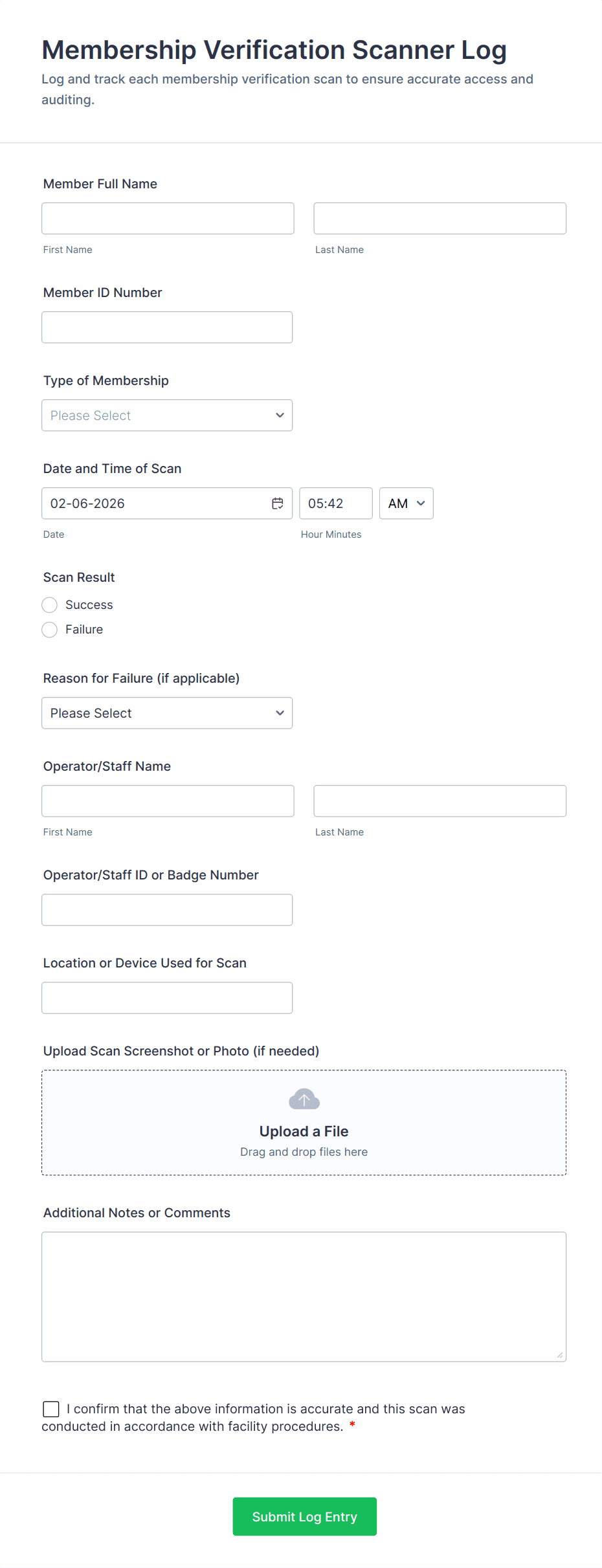 Access control forms are structured documents used to request, approve, and document access to physical locations, systems, or restricted resources. They help organizations manage who can enter certain areas, use specific equipment, or access sensitive digital systems by collecting consistent details such as requester identity, access level, justification, and approval records. Access control forms are commonly used in offices, campuses, data centers, hospitals, warehouses, and IT environments for badge requests, visitor access, temporary passes, role-based system access, and permission changes. By standardizing access requests, these forms reduce security risks, improve accountability, and create clear audit trails.