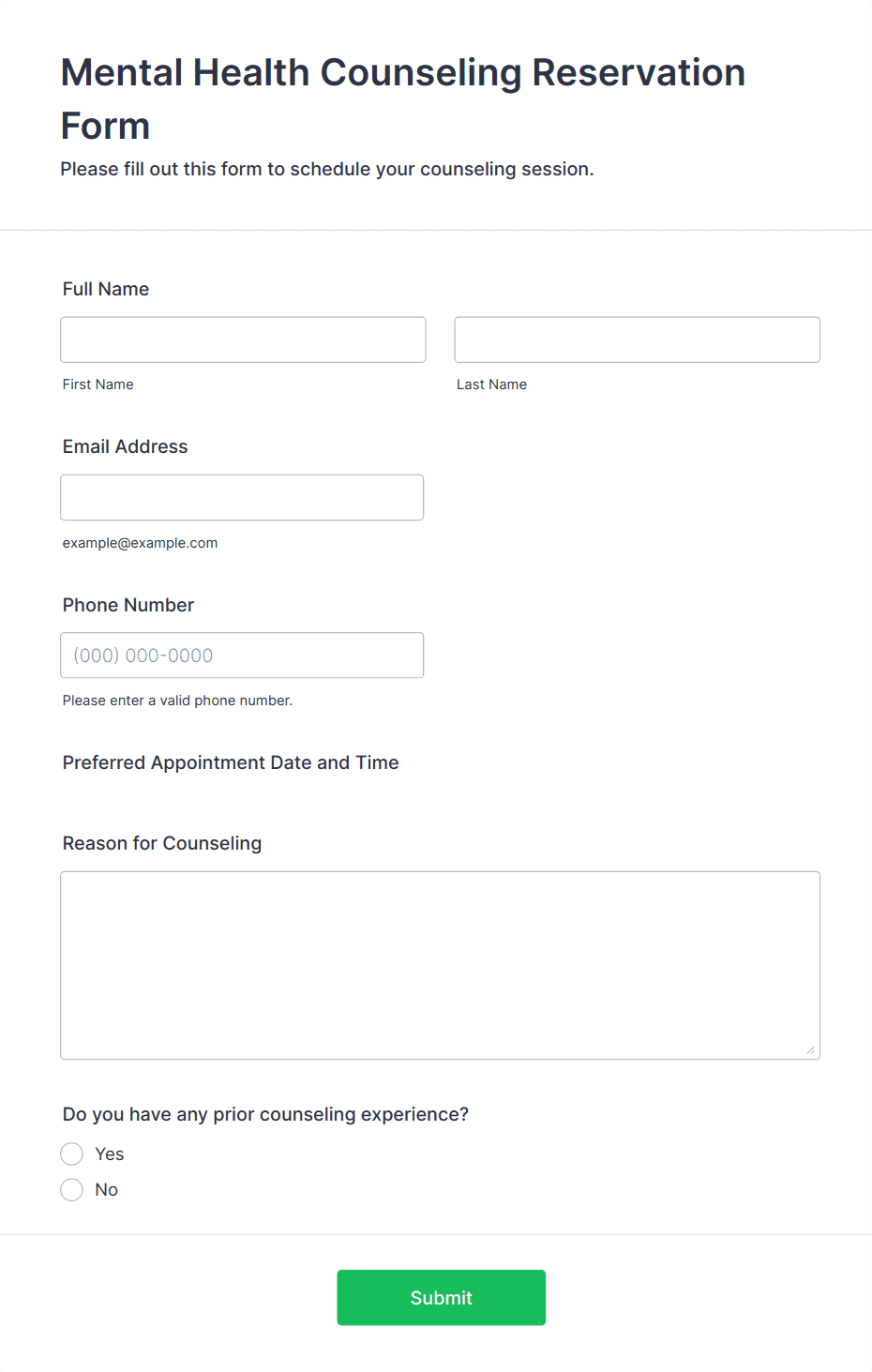 Appointment forms are digital tools designed to streamline the process of scheduling meetings, consultations, interviews, or any type of appointment between service providers and clients. These forms are commonly used by healthcare professionals, salons, educational institutions, consultants, and businesses that require organized time management for their services. By collecting essential information such as preferred dates, times, contact details, and specific service requests, appointment forms help reduce scheduling conflicts, minimize no-shows, and improve overall efficiency. Whether you’re managing a busy clinic, coordinating interviews, or booking personal training sessions, appointment forms provide a structured way to handle bookings and keep your calendar organized.