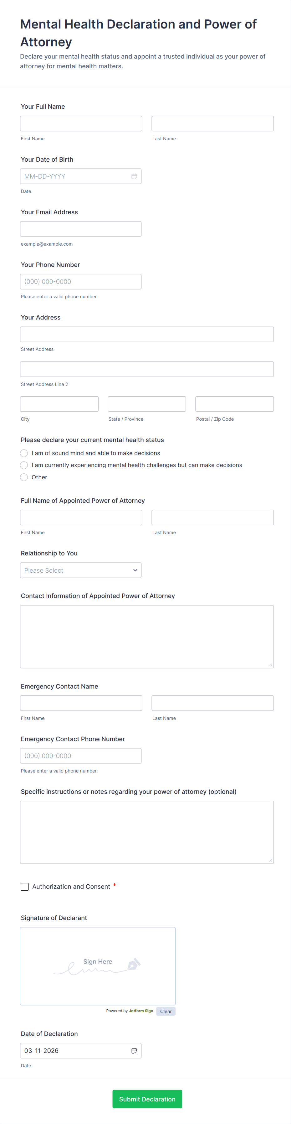 Creating a mental health form with Jotform helps you collect sensitive information in a clear, respectful, and structured way. A well-designed form should feel easy to complete while still capturing the details needed for support or care decisions.