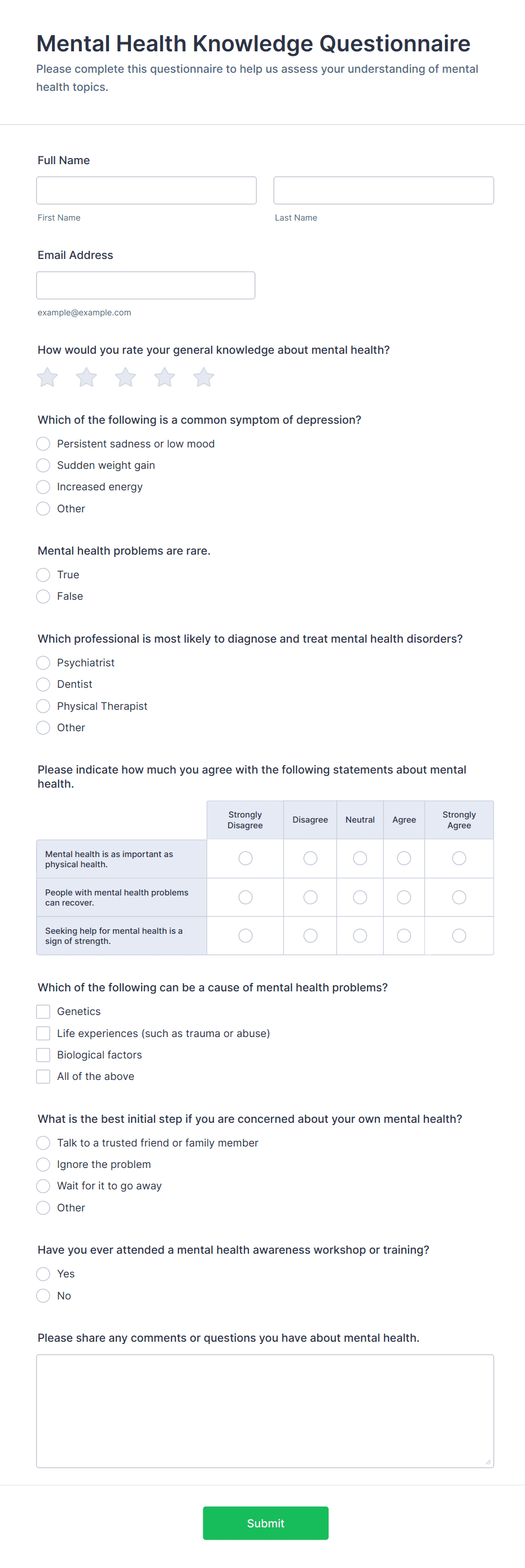 - Some questionnaires require conditional logic to show or hide questions based on previous answers.