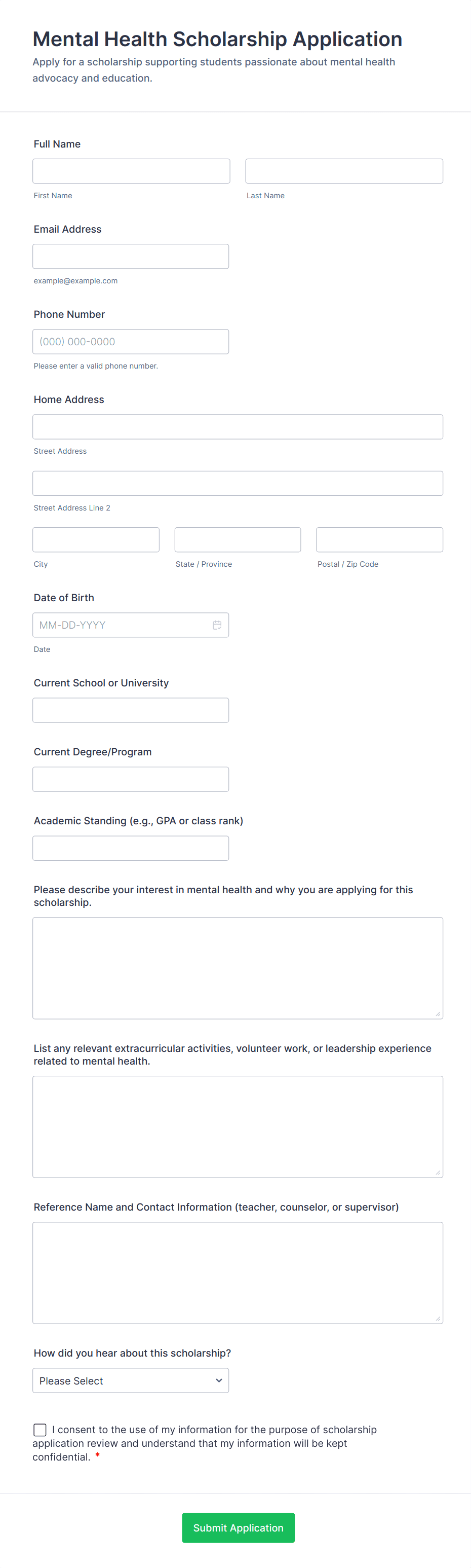 By following these steps, you can create a comprehensive scholarship application form that streamlines the application process, ensures data accuracy, and provides a positive experience for both applicants and reviewers.