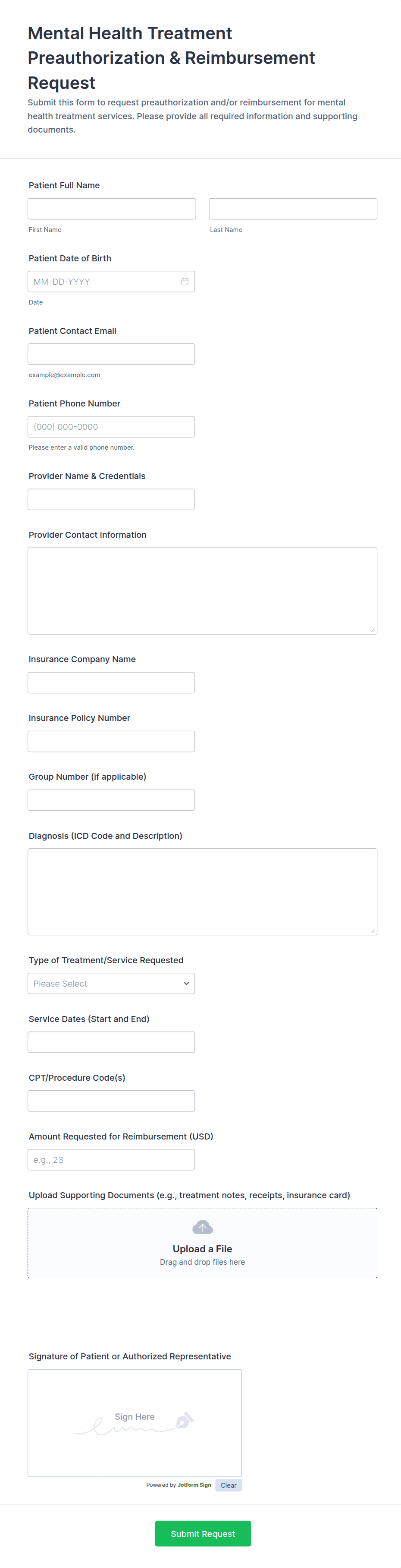 Mental health forms are documents or online forms used to collect information related to emotional well-being, psychological support, and behavioral health services.