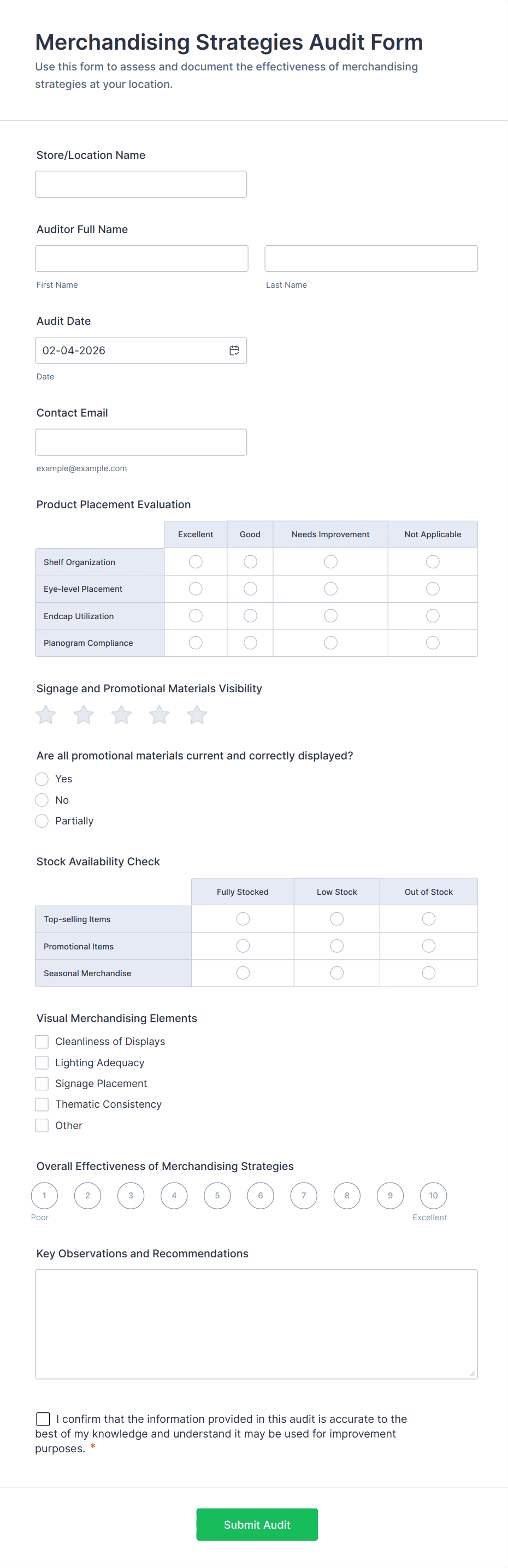 Store Audit Checklist Form