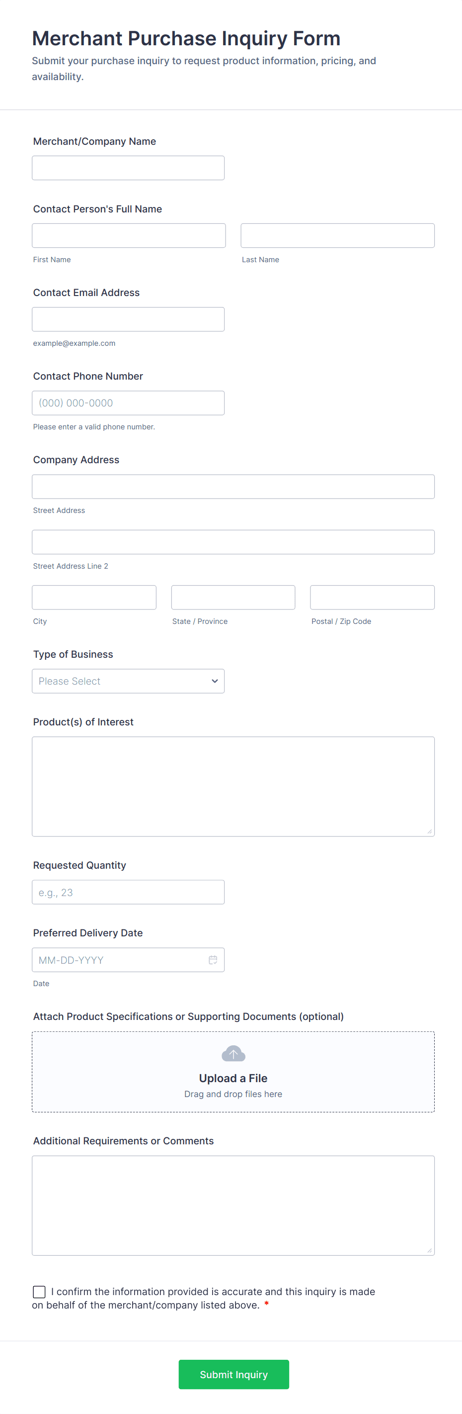Yes, merchant forms can be tailored for product orders, service bookings, vendor applications, inventory requests, and more, depending on the business’s needs.