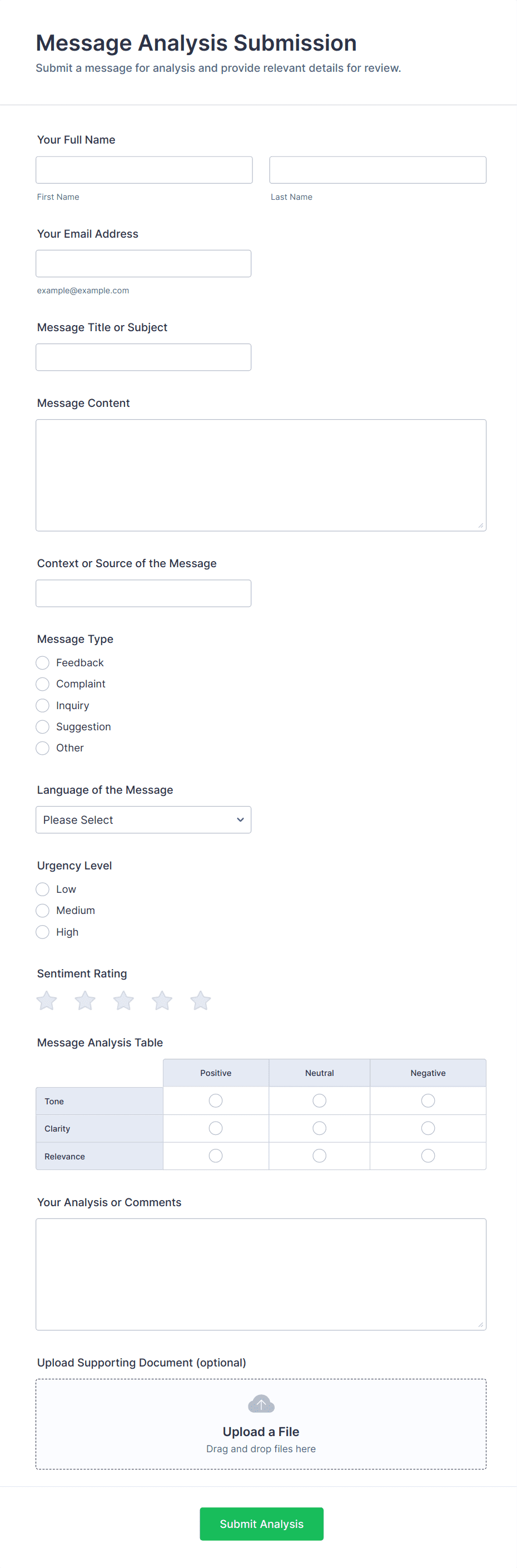 Content Forms are specialized online forms designed to facilitate the collection, submission, and management of various types of content. These forms are commonly used for gathering articles, blog posts, creative writing, multimedia files, user-generated content, feedback, and editorial submissions. Organizations, publishers, marketing teams, and educators often rely on Content Forms to streamline the process of receiving and organizing content from contributors, freelancers, or the public. Whether you’re running a magazine, managing a content marketing campaign, or collecting student assignments, Content Forms help ensure that submissions are structured, complete, and easy to review.