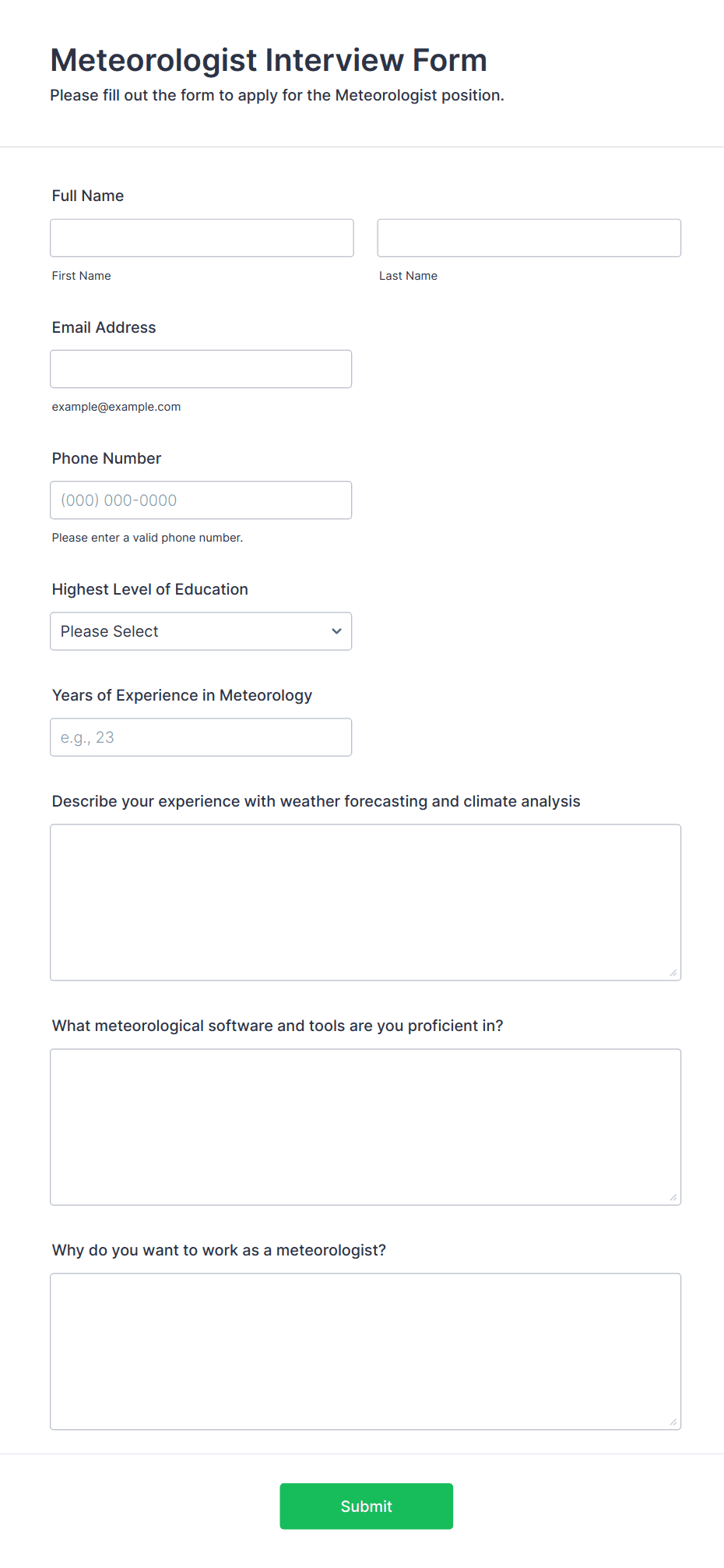 An interview form is a structured document or digital tool used to collect information from individuals during interviews. It standardizes the questions and response formats, ensuring consistency and efficiency in data collection.
