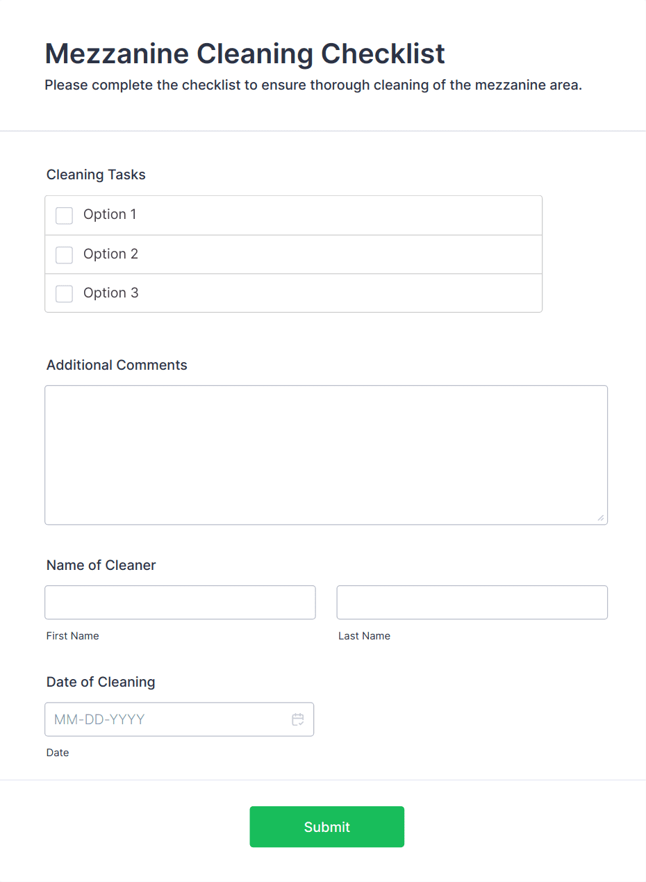 Cleaning Forms are specialized digital forms designed to streamline and organize the processes involved in cleaning services, facility maintenance, and janitorial operations. These forms can be used for a variety of purposes, such as scheduling cleaning appointments, conducting cleaning inspections, tracking supply usage, logging completed tasks, and collecting client feedback. Whether you manage a commercial cleaning company, oversee in-house custodial teams, or offer residential cleaning services, Cleaning Forms help ensure that all tasks are documented, standards are met, and communication between staff and clients remains clear and efficient.