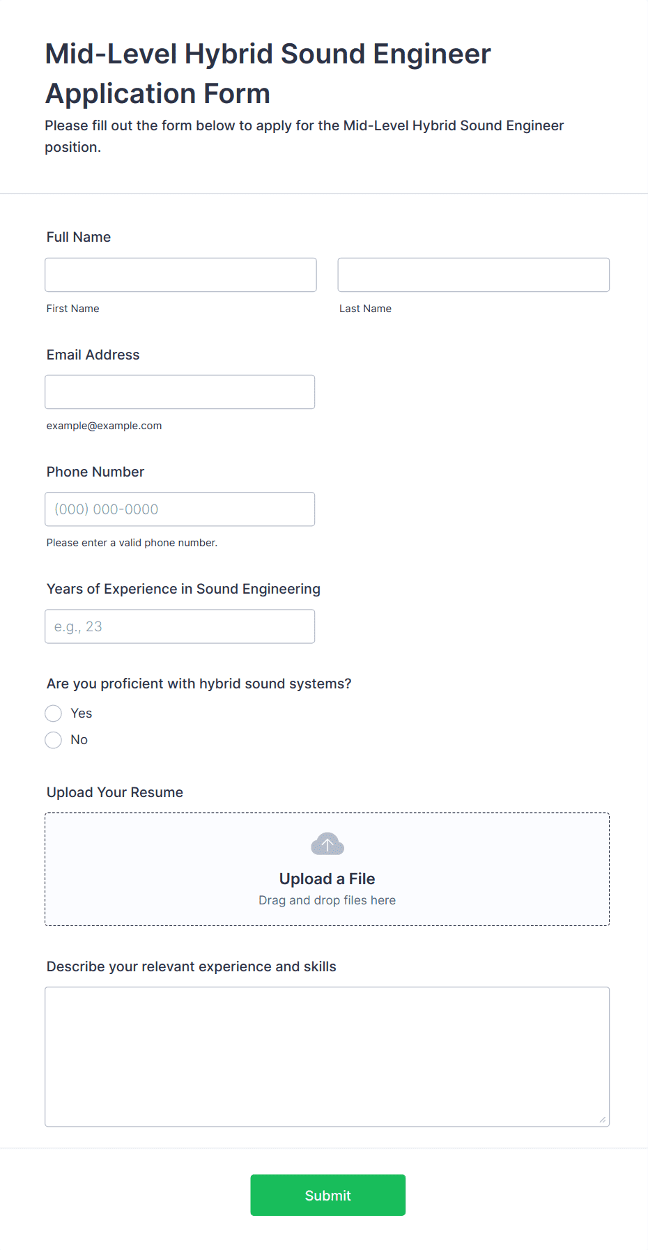 A new job application form is a form used to collect information from job applicants. No coding!