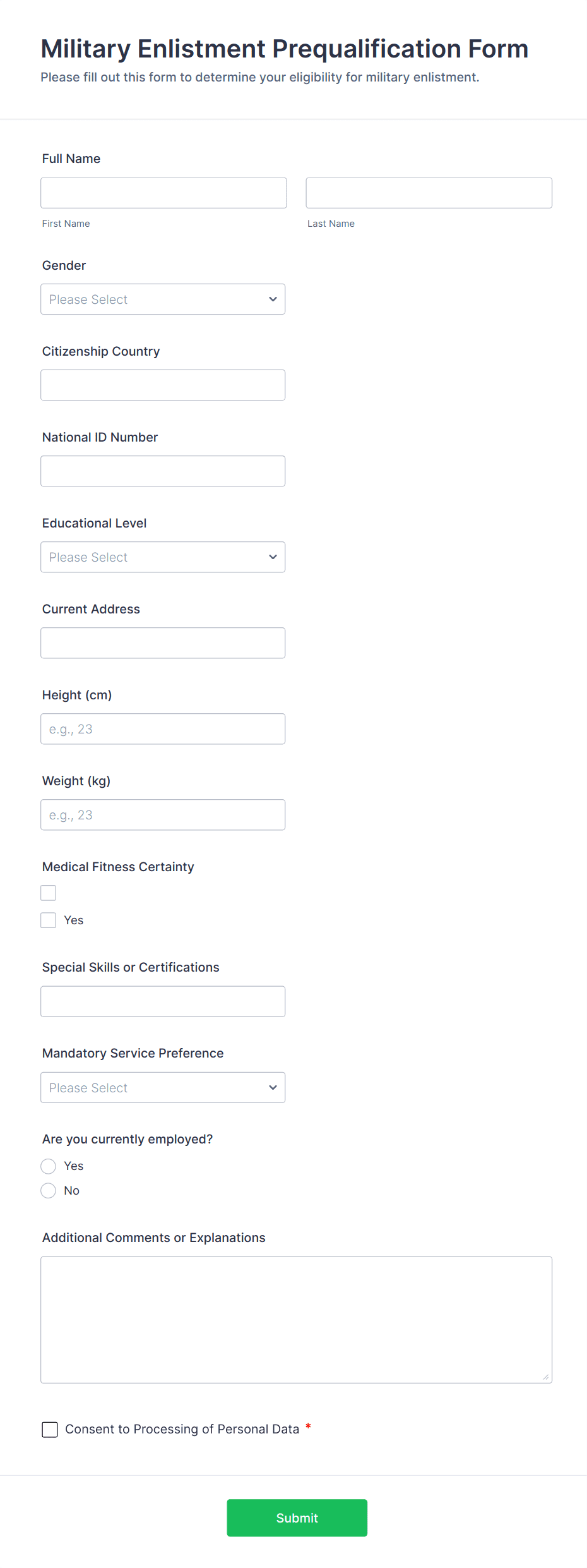 • For job applications, include fields for personal information, education, work experience, references, and file uploads for resumes or cover letters.