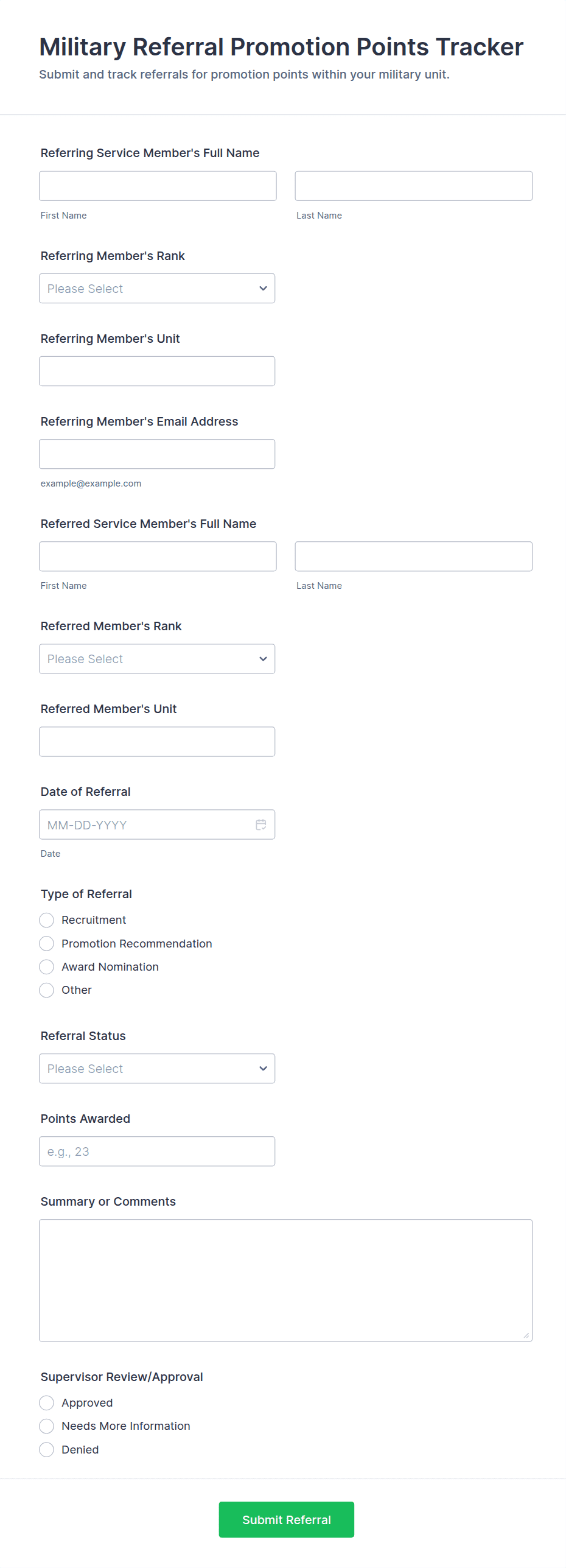 Each use case will dictate the type and number of fields, required validations, and any conditional logic needed.
