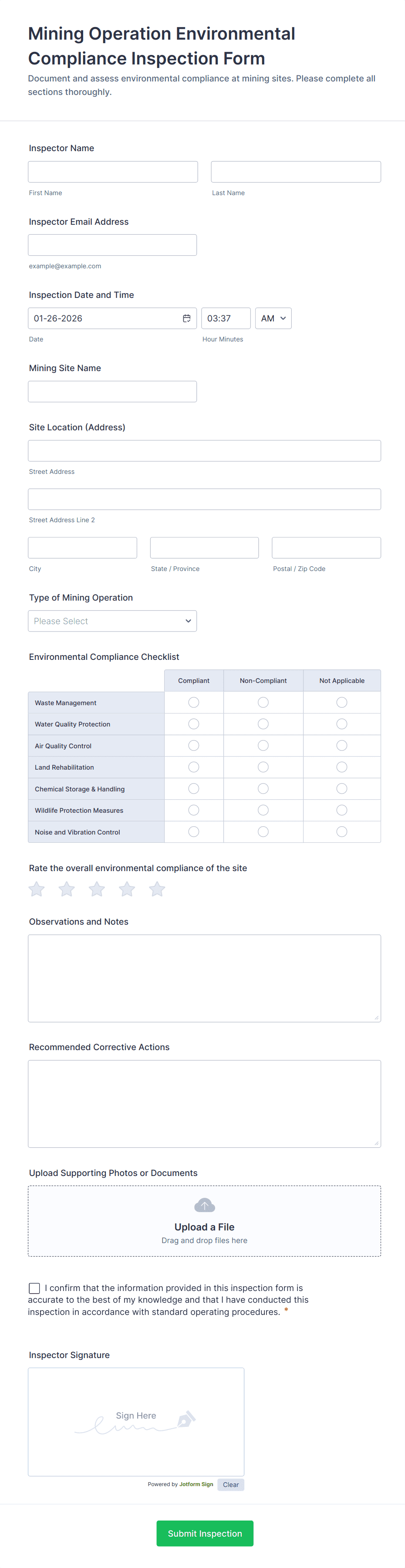 Creating an effective inspection form with Jotform is straightforward and highly customizable, allowing you to address the unique requirements of your inspection process. Whether you’re conducting safety audits, equipment checks, or property walkthroughs, Jotform’s platform ensures your forms are comprehensive, user-friendly, and accessible from any device.