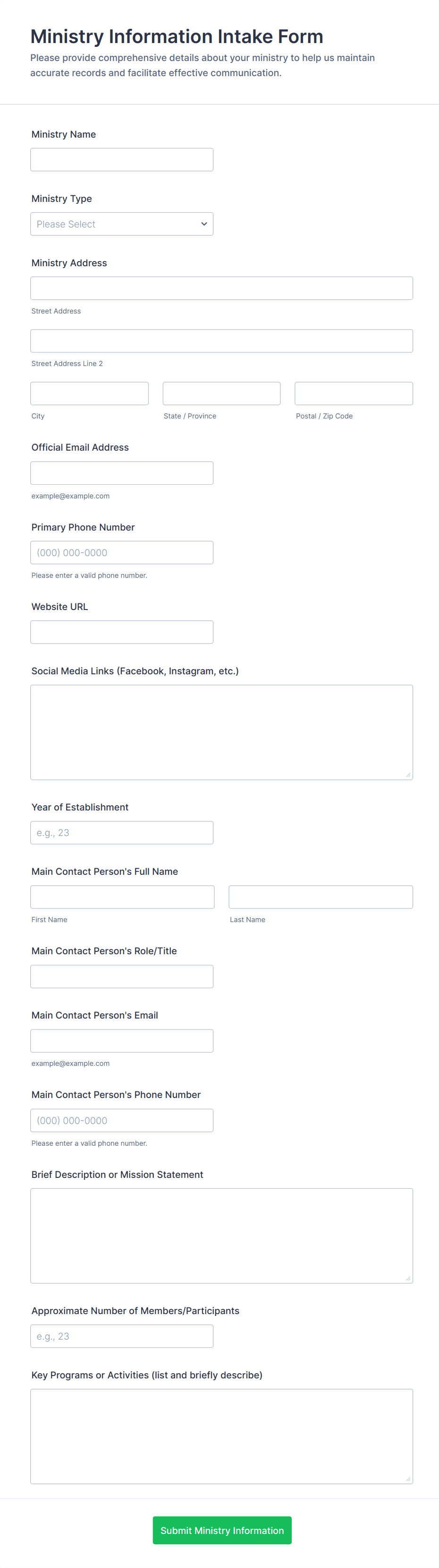 Intake forms are essential tools used to gather preliminary information from clients, patients, customers, or participants before providing a service or beginning a process. These forms streamline the onboarding process by collecting relevant details such as contact information, background data, preferences, and specific needs. Intake forms are widely used across various industries, including healthcare (patient intake), legal (client intake), education (student intake), human resources (employee onboarding), and service-based businesses (client consultations). By standardizing the information-gathering process, intake forms help organizations ensure consistency, improve efficiency, and deliver personalized experiences.
