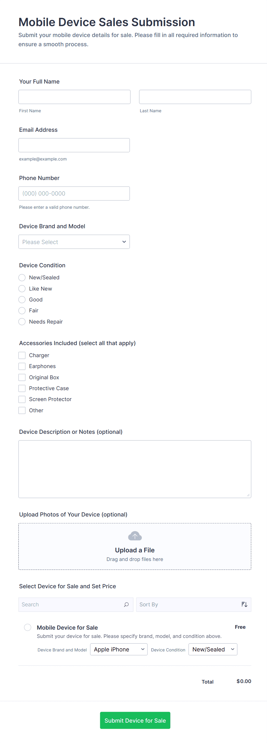 • For wholesale or custom orders, include fields for bulk pricing, tax information, or file uploads for specifications.