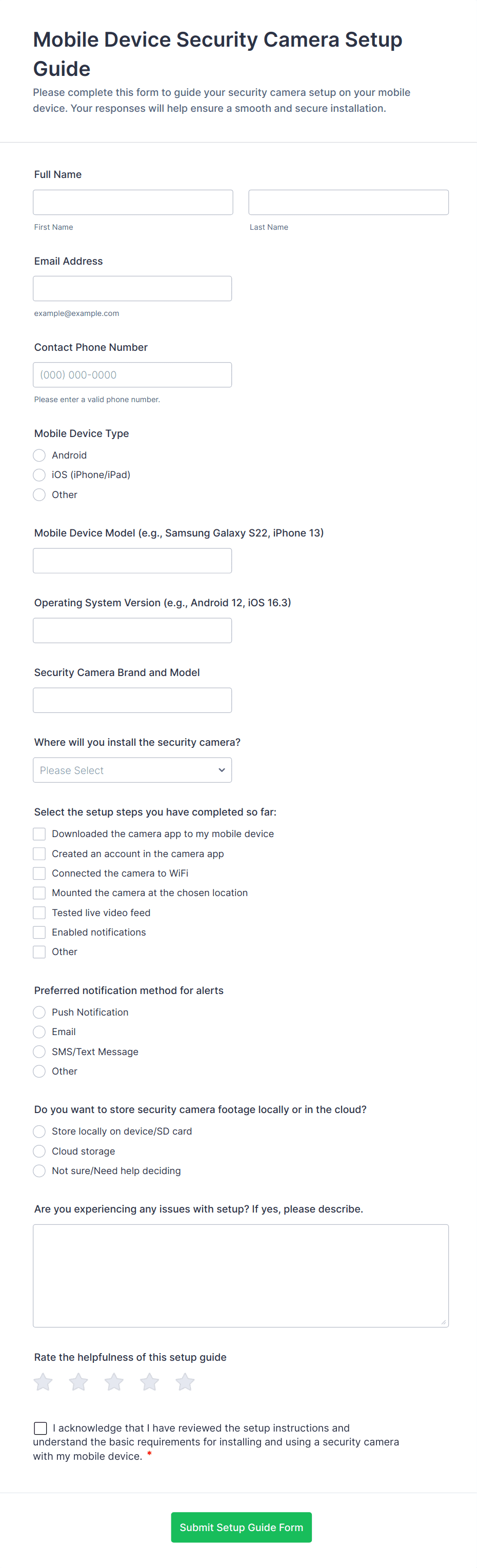 A server request form is a document that describes the server requirements and operating environment to be used for a software or hardware product. Easily embed this form either on your website or share it via URL. No coding.