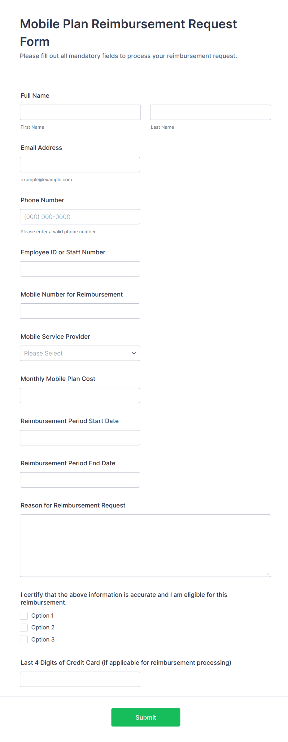 Mobile Plan Reimbursement Request Form