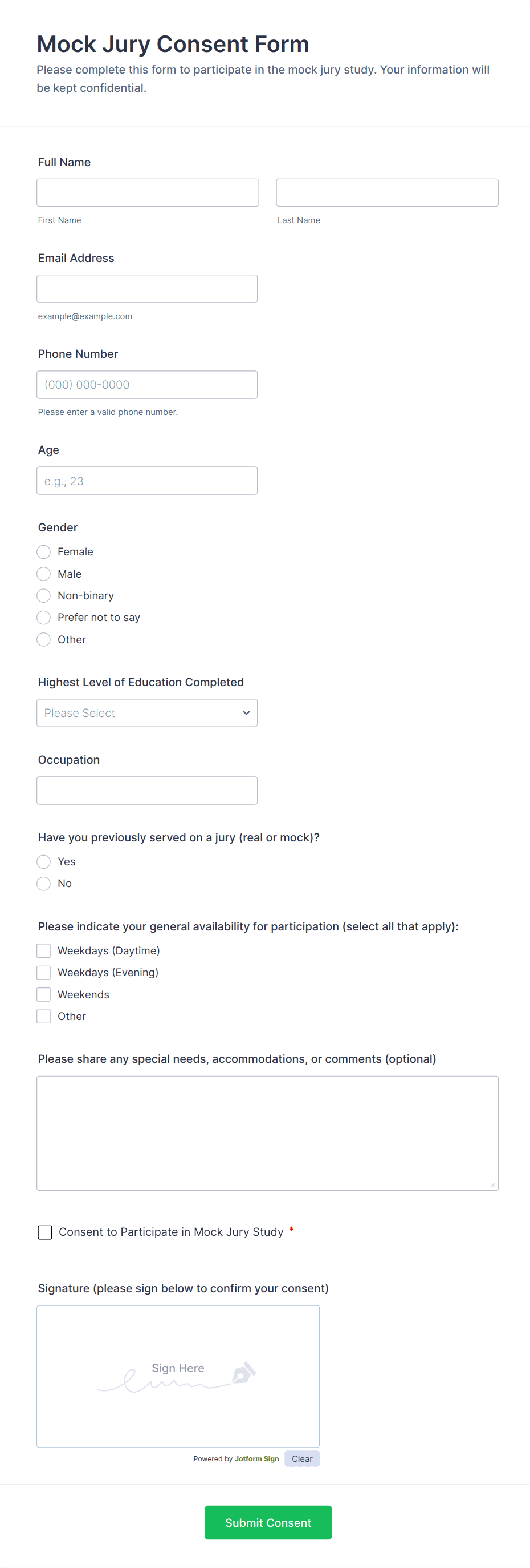 Creating a consent form that is both comprehensive and user-friendly is crucial for ensuring informed agreement and legal compliance. With Jotform, you can easily design consent forms for any scenario—be it medical, educational, research, or business—using intuitive tools and customizable templates. Here’s a step-by-step guide to building an effective consent form with Jotform: