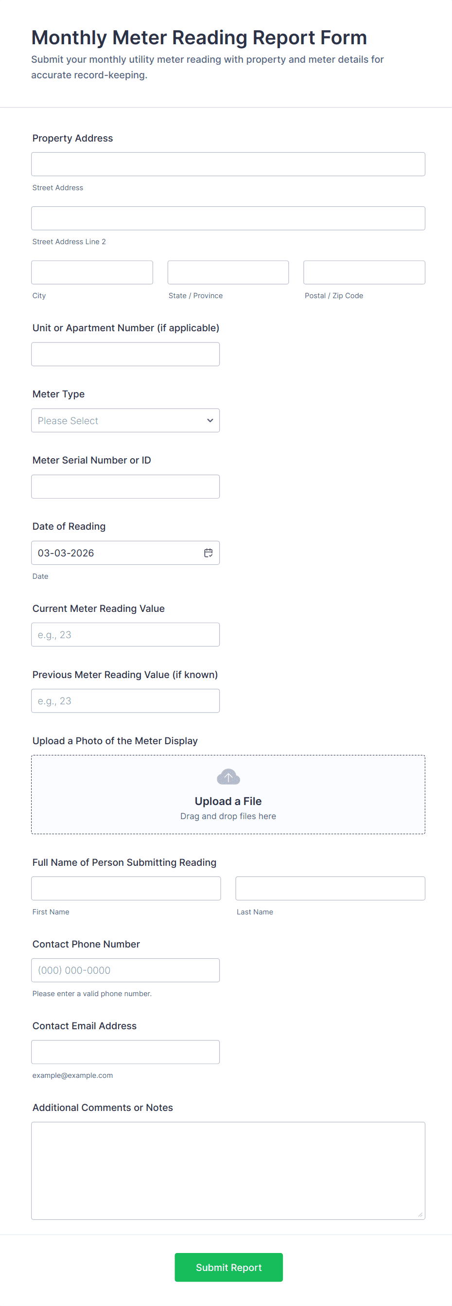 • For business reports: Include fields for dates, metrics, comments, and file uploads.