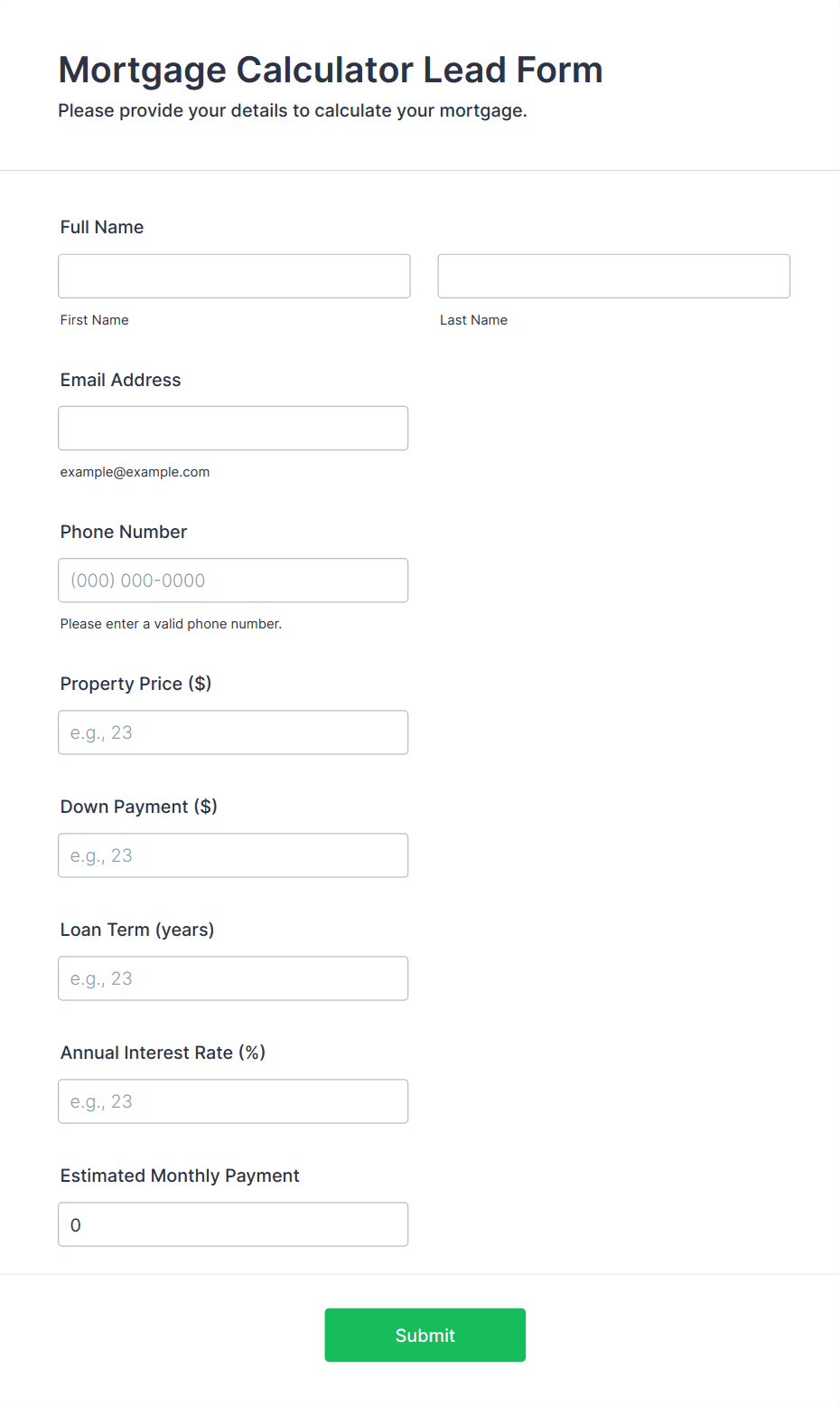 - For more advanced lead qualification, include dropdowns, multiple choice questions, or short/long text fields for specific needs (e.g., budget, project details, industry).