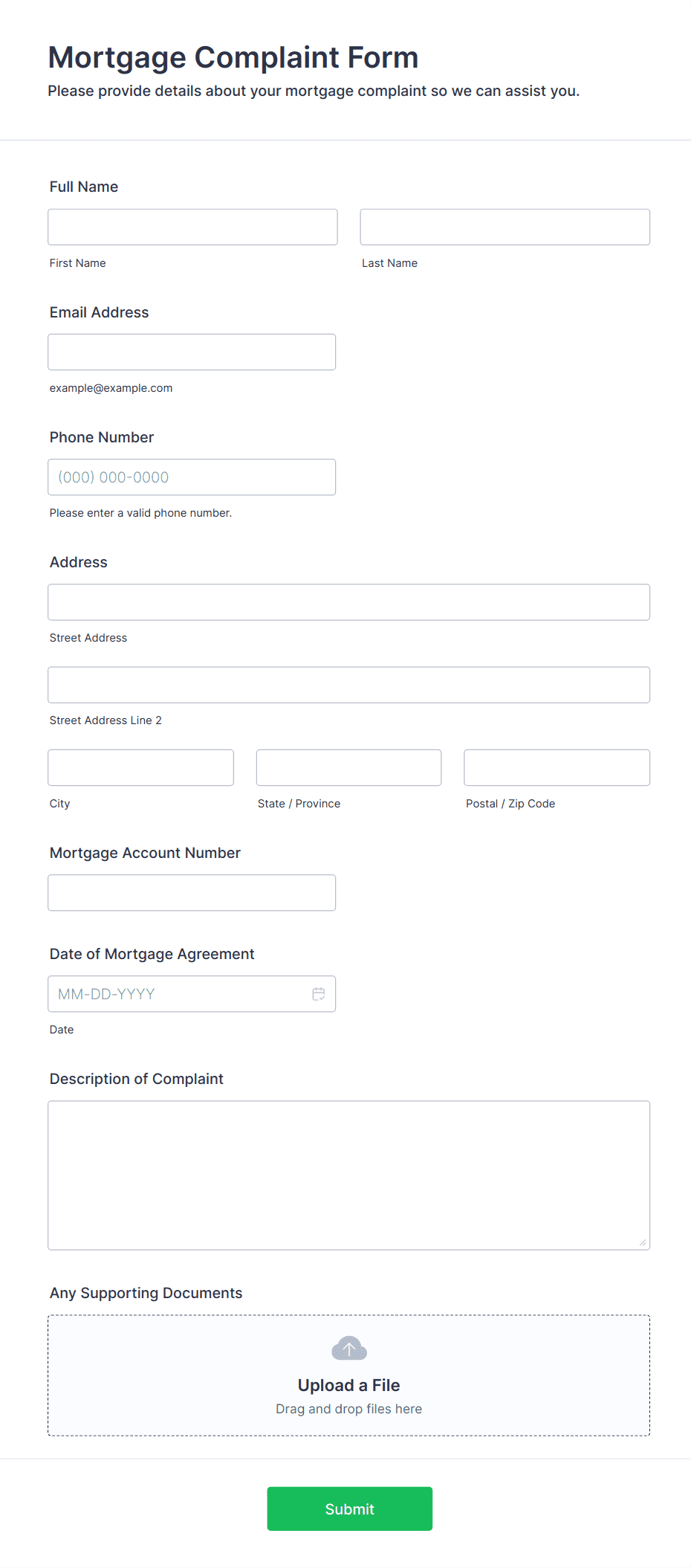 • Use conditional logic to show or hide fields based on user responses (e.g., display additional questions if the complaint is about a specific service).