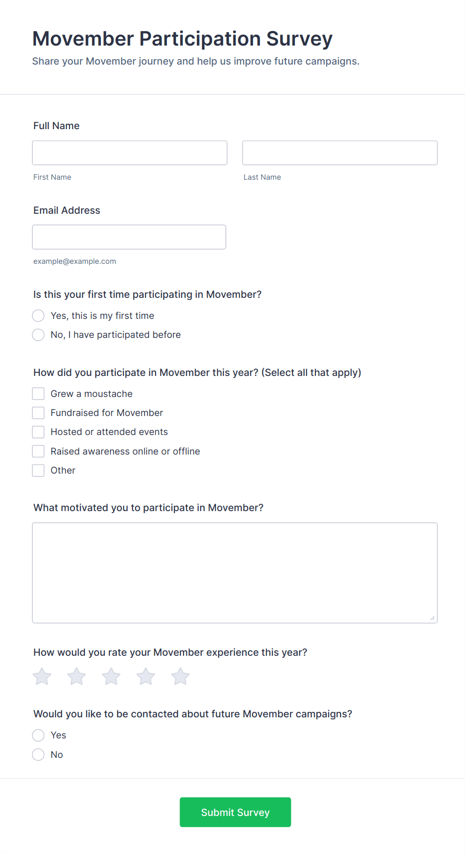 • For internal surveys (like employee satisfaction), restrict access or require authentication as needed.
