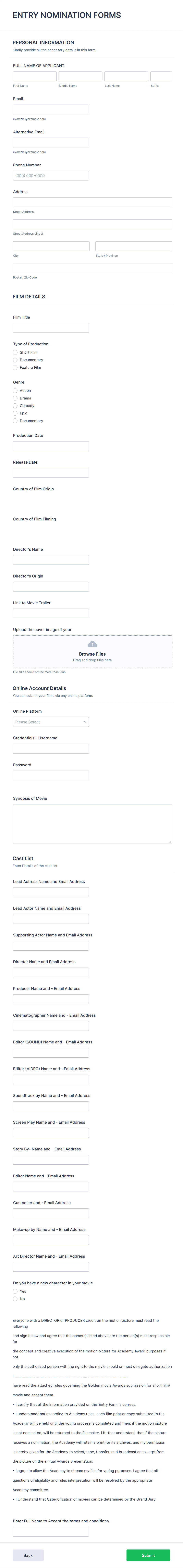 - Use conditional logic to show or hide fields based on previous answers (e.g., different questions for different award categories).