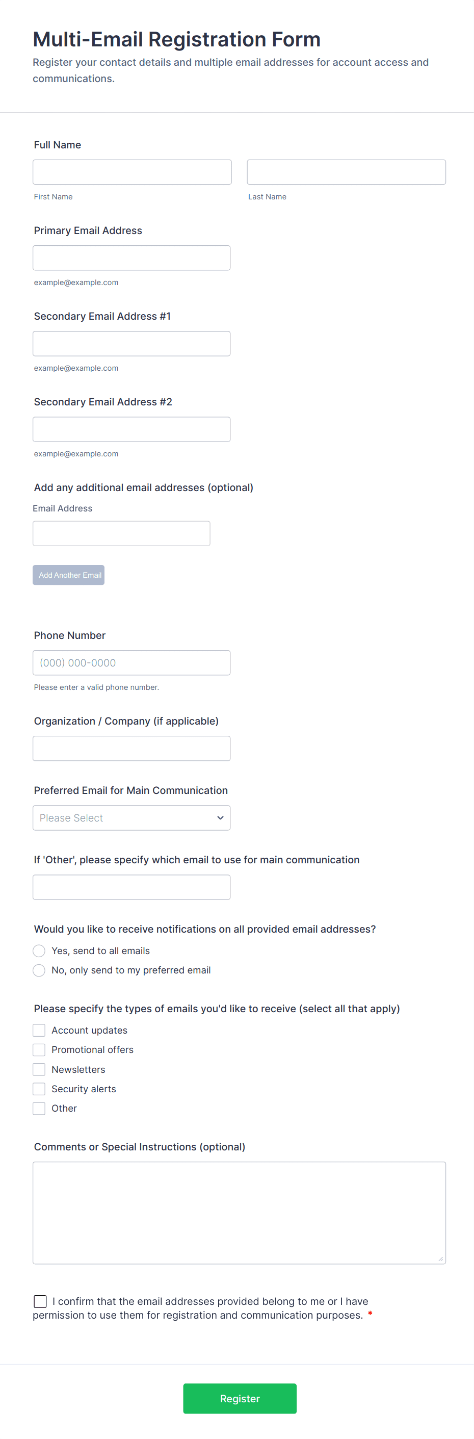 Sign up forms are essential digital tools used to collect information from individuals who wish to join, subscribe, or participate in a service, event, or platform. Whether you’re managing event registrations, building an email subscriber list, onboarding new members, or recruiting volunteers, sign up forms streamline the process of gathering key details such as names, contact information, preferences, and consent. Their versatility makes them invaluable for businesses, educational institutions, nonprofits, clubs, and community organizations looking to efficiently manage participation and engagement.