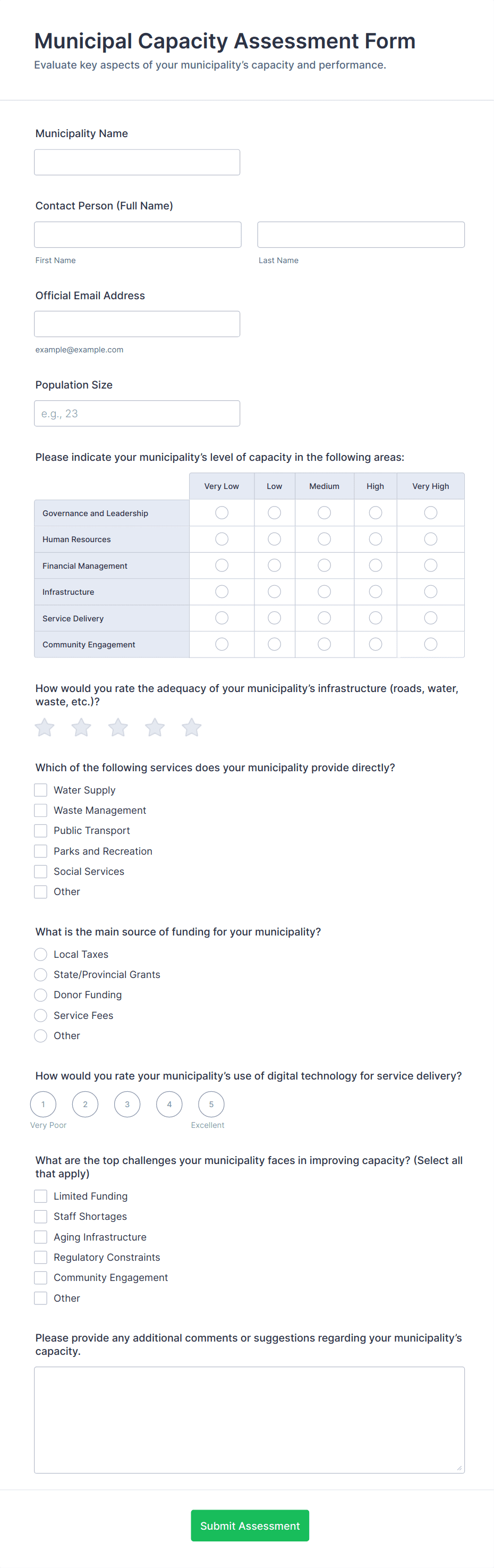 Accessibility Barriers in Public Spaces Survey Form helps cities, nonprofits, and community groups collect detailed feedback on accessibility issues in public areas for better planning and improvements.