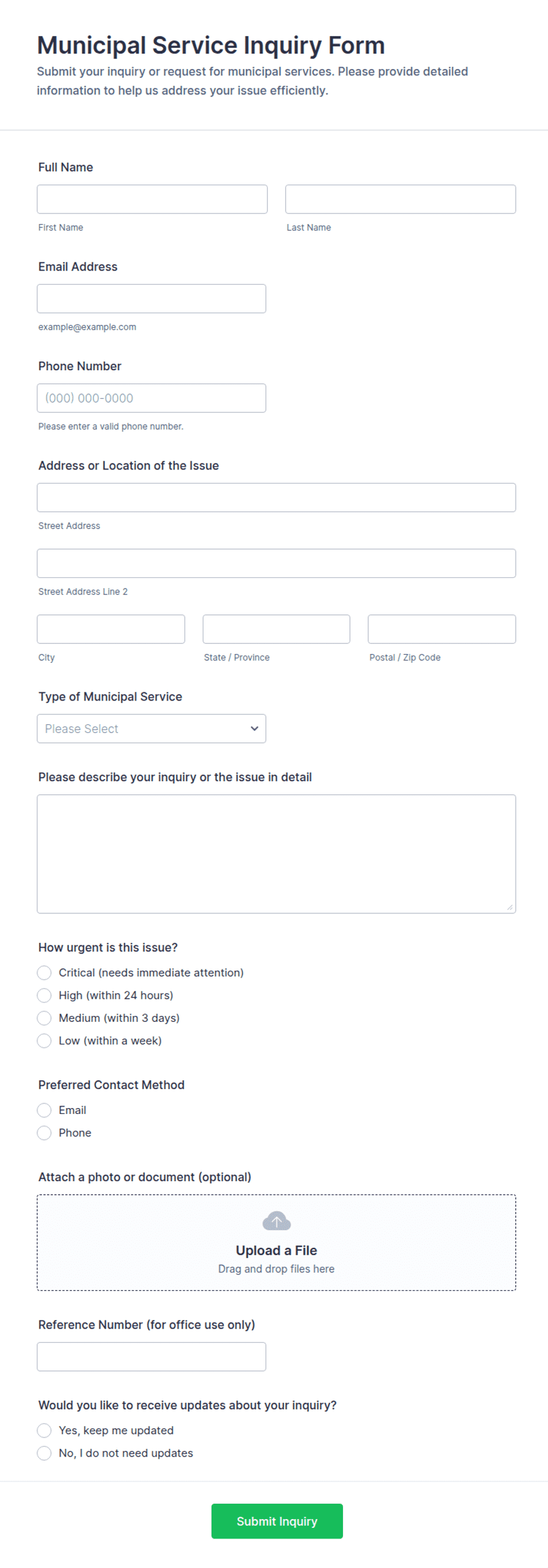 Inquiry Form Templates are versatile tools that can be adapted to a wide range of scenarios, helping organizations efficiently collect and manage incoming questions or requests. Here’s how they can be used, who can benefit, and how their structure may vary:
