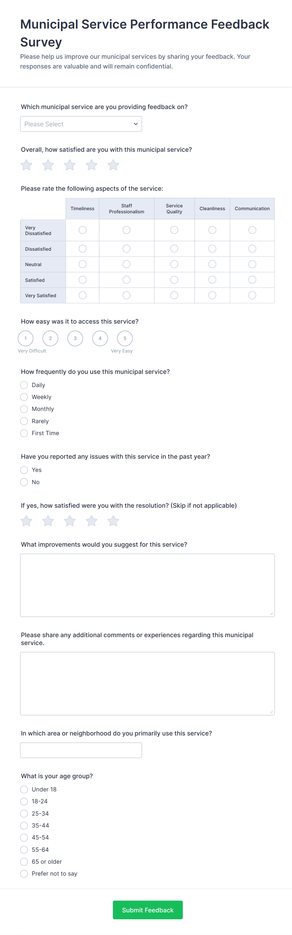 Accessibility Barriers in Public Spaces Survey Form helps cities, nonprofits, and community groups collect detailed feedback on accessibility issues in public areas for better planning and improvements.