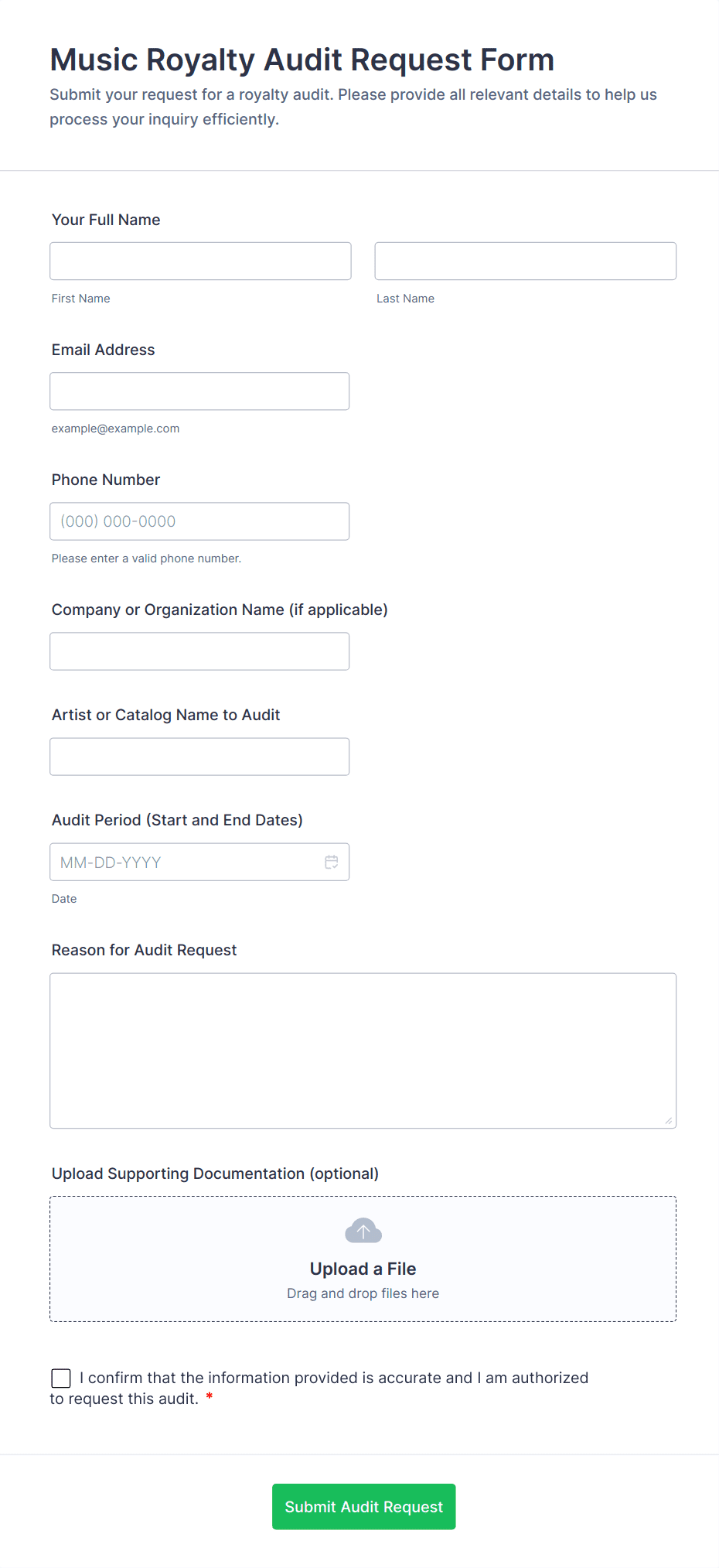 Audit forms are used by safety officers, quality managers, compliance teams, auditors, facility managers, HR professionals, and other stakeholders responsible for oversight and evaluation.