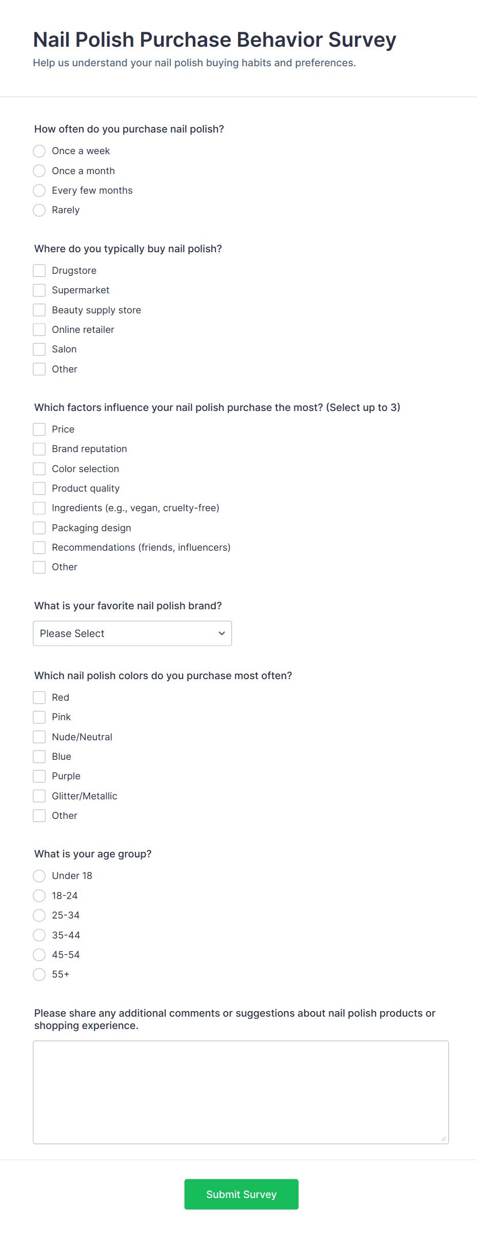 Collect feedback with a Skin Care Product Feedback Form and improve your skincare product based on feedback collected from the customers. No code required!