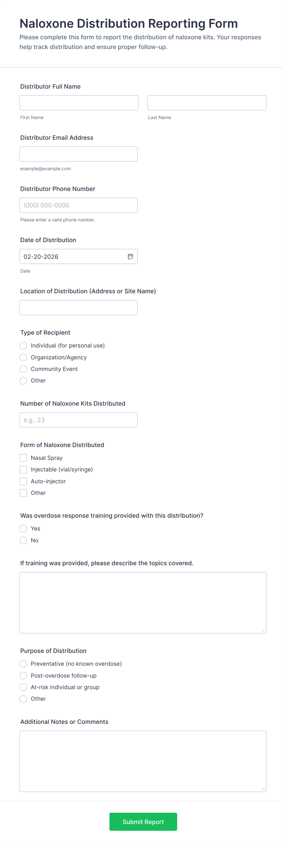 Delivery Report Form