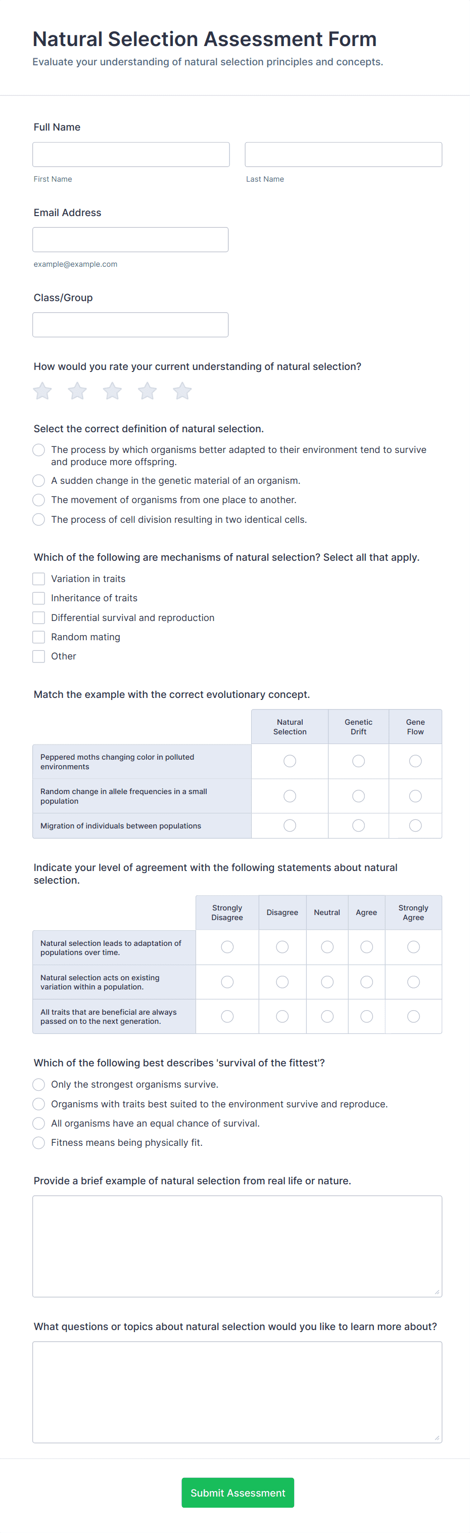 Creating a student assessment form with Jotform helps educators standardize evaluation while keeping assessment records organized and easy to review.