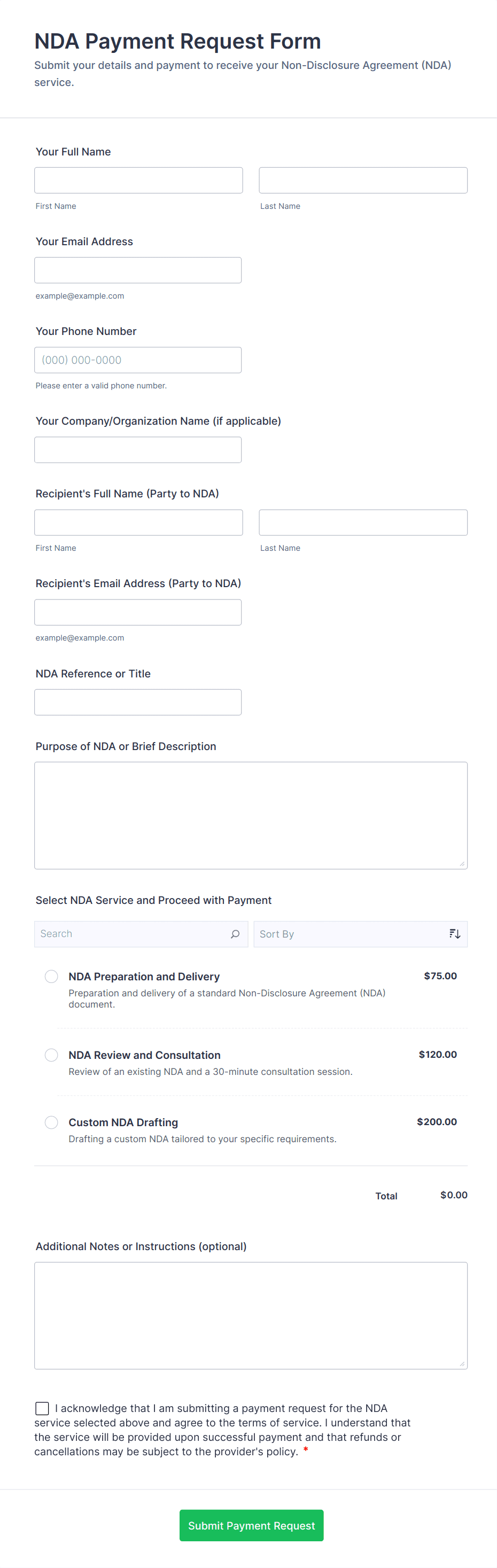 - Service booking forms may require date/time pickers and service selection alongside payment.