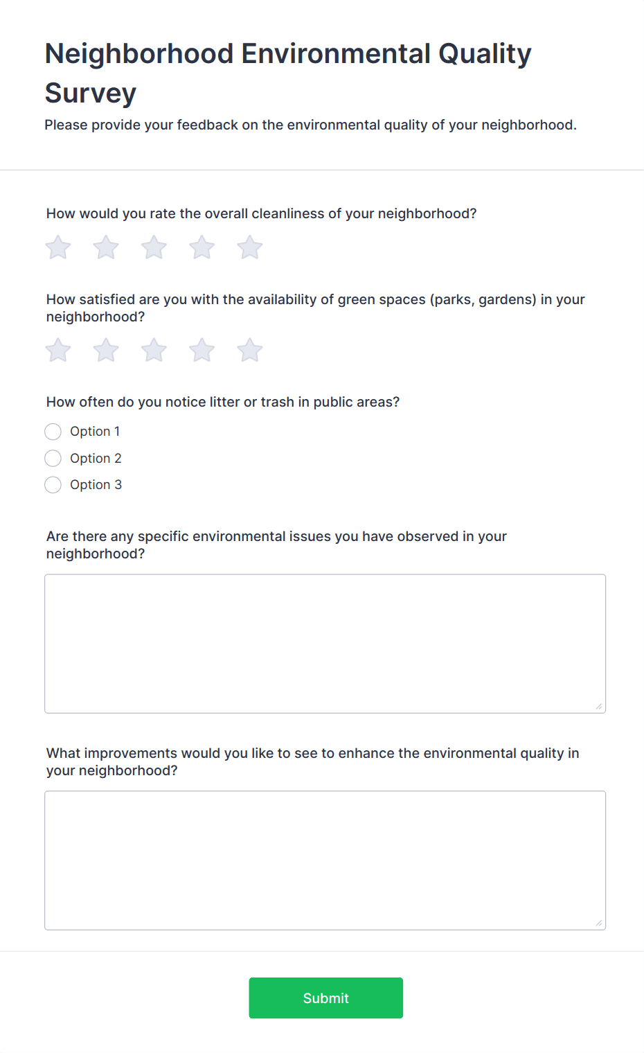 - Short and long text fields for open-ended feedback.