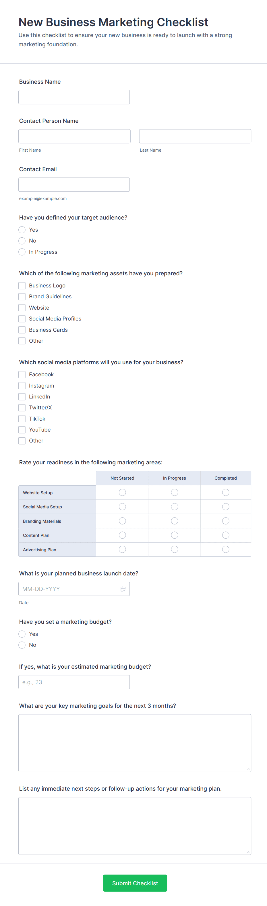 • For more complex checklists, add dropdowns, file upload fields (for attaching evidence or reports), or signature fields (for verification).
