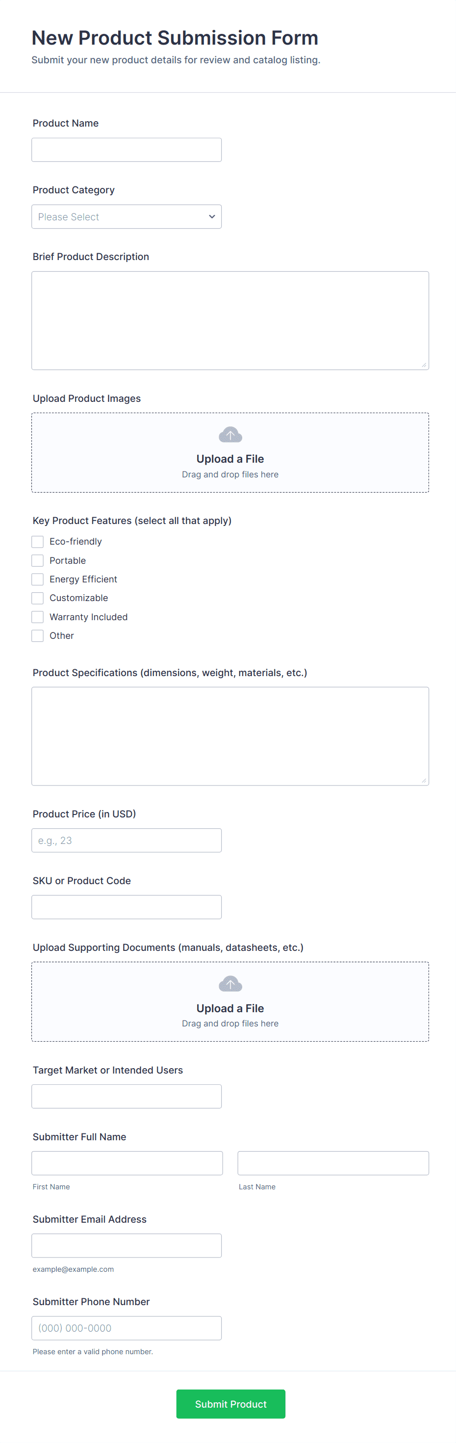 - Support Request Forms: Combine file upload with detailed problem description fields and contact information.