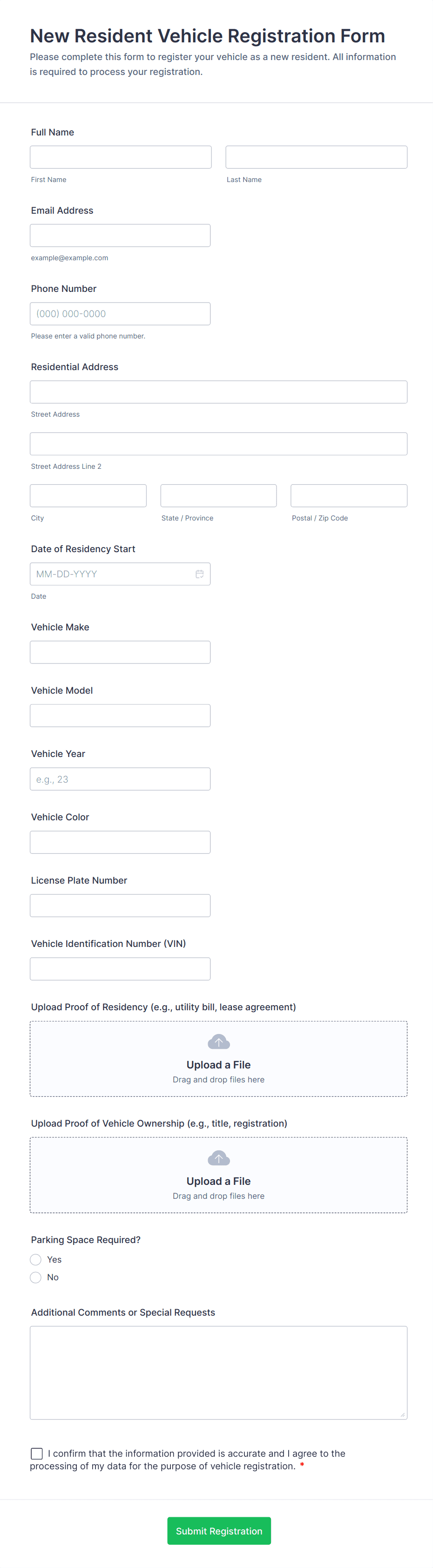 Vehicle Registration Form