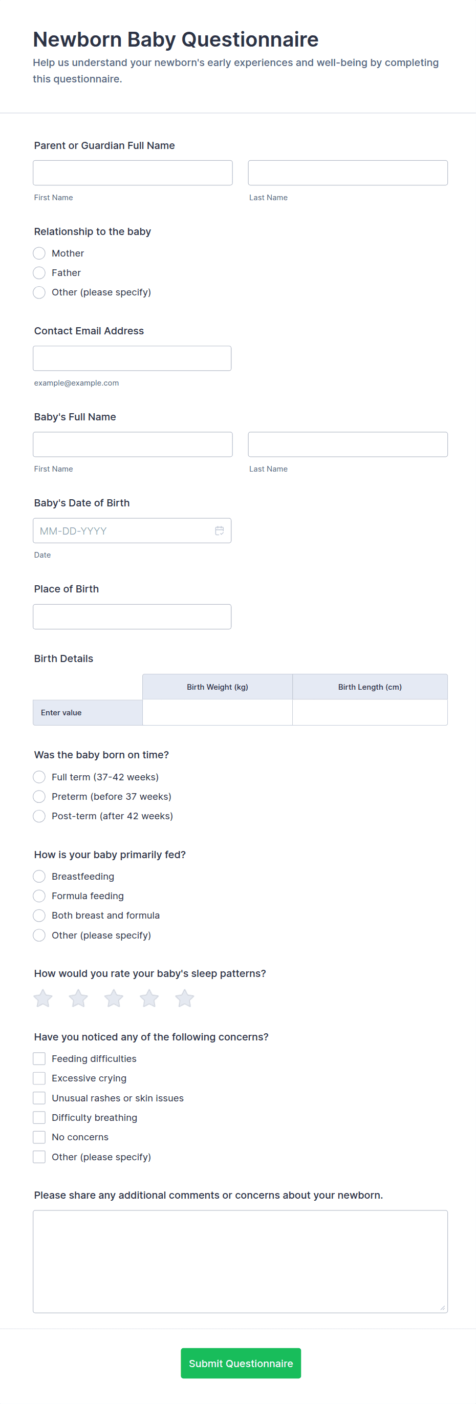 - Some questionnaires require conditional logic to show or hide questions based on previous answers.