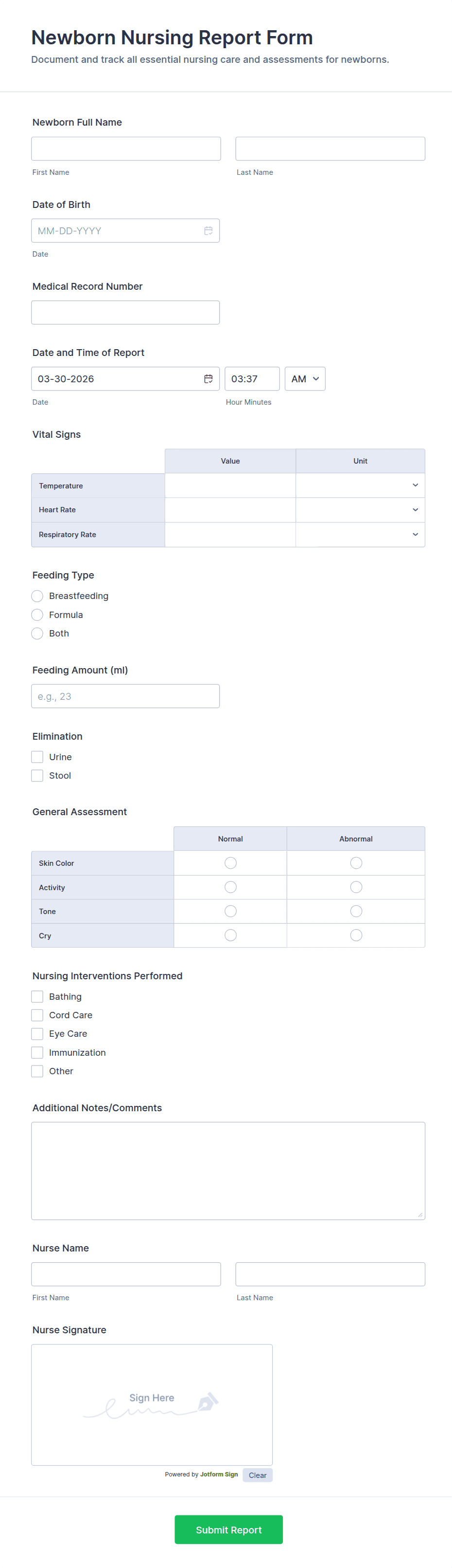 Need a quick but secure way to collect nursing information for your practice? Switch from paper forms to online forms and give your nurses a better way to gather health data from any device with our free Nurse Forms. Explore templates that make it easy to collect surveys, registrations, and evaluations, or to track medications, complete performance evaluations, and accomplish other internal tasks. All of our templates are fully customizable with our drag-and-drop builder, so you can get the look you want with no coding required! Jotform even offers an option to upgrade for HIPAA compliance features. Create a complete online database of all your nursing information with Jotform’s powerful Nurse Forms.