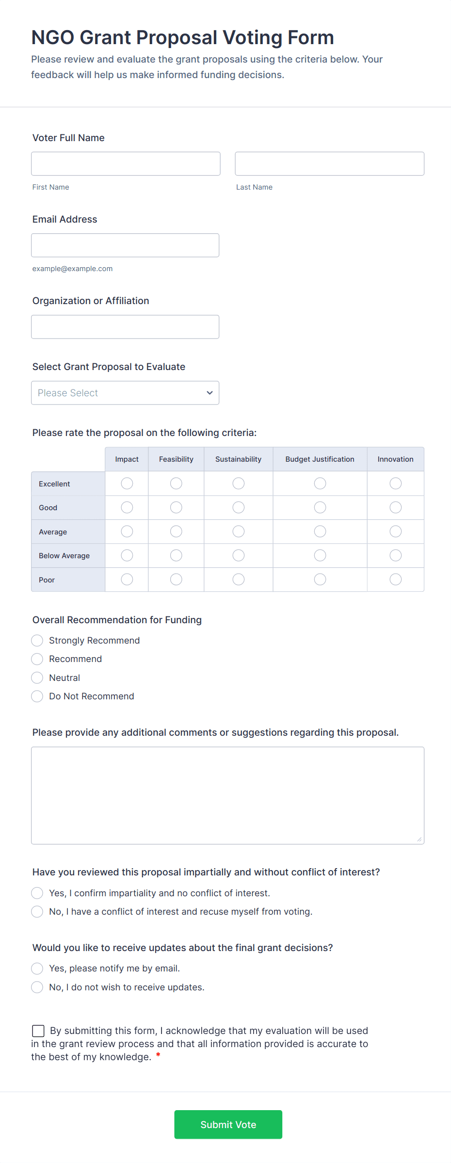 By following these steps, you can create a tailored voting form that meets your specific needs, ensures data integrity, and provides a seamless experience for all participants.