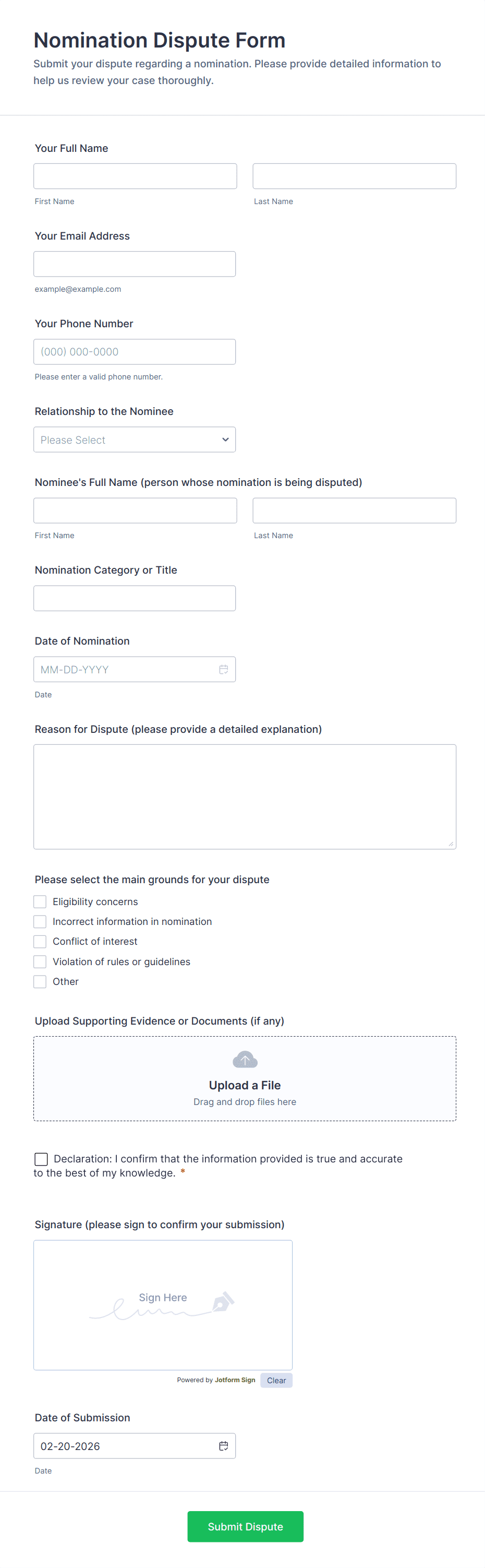 Creating a nomination form with Jotform helps you collect strong, comparable nominations while making review easier for committees.