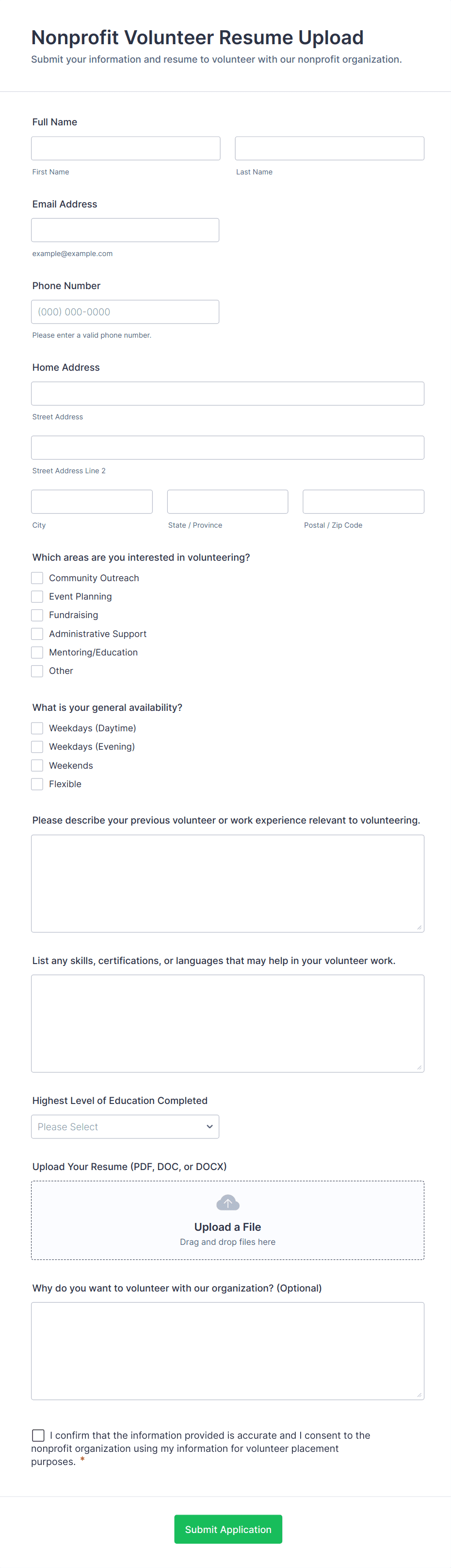 By following these steps, you can create a professional, user-friendly volunteer form that simplifies recruitment, improves data accuracy, and enhances your overall volunteer management process.