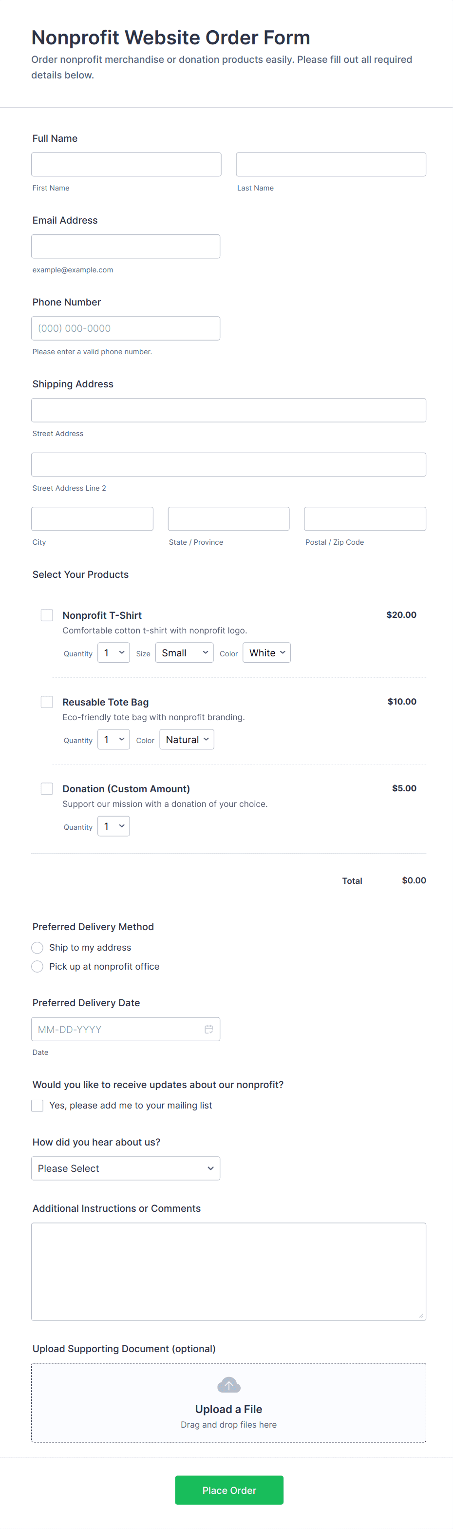 - Special Instructions: Allow supporters to leave notes or specify preferences.