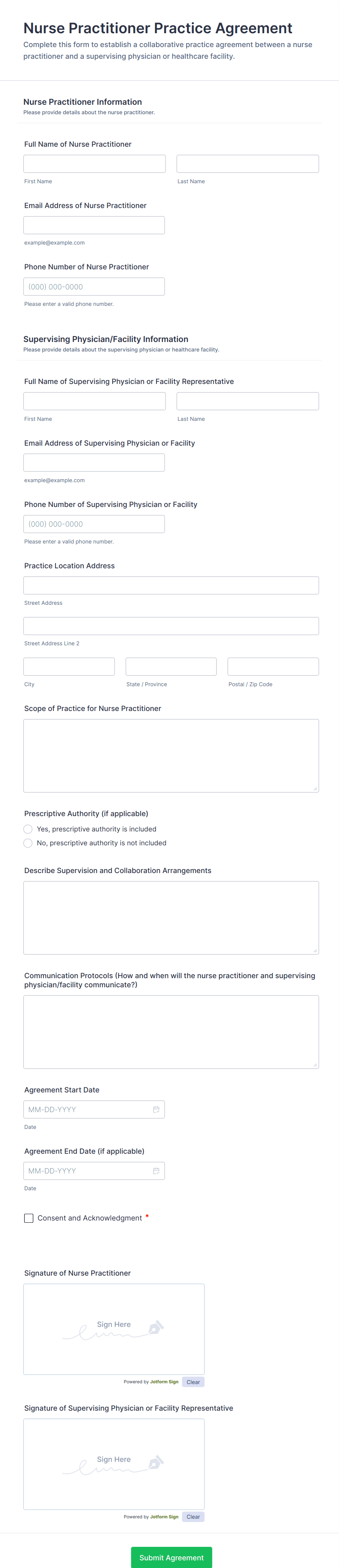Need a quick but secure way to collect nursing information for your practice? Switch from paper forms to online forms and give your nurses a better way to gather health data from any device with our free Nurse Forms. Explore templates that make it easy to collect surveys, registrations, and evaluations, or to track medications, complete performance evaluations, and accomplish other internal tasks. All of our templates are fully customizable with our drag-and-drop builder, so you can get the look you want with no coding required! Jotform even offers an option to upgrade for HIPAA compliance features. Create a complete online database of all your nursing information with Jotform’s powerful Nurse Forms.