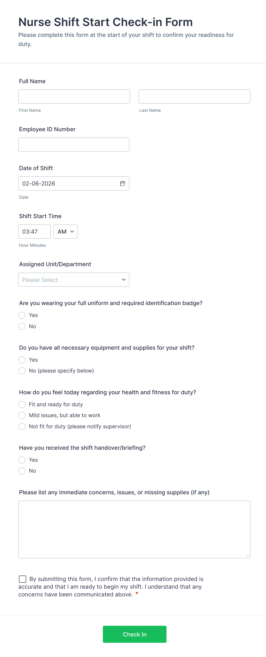 A nurse form is a digital or paper document used by nurses to collect, record, and manage patient information, medical histories, incident reports, and other healthcare-related data.