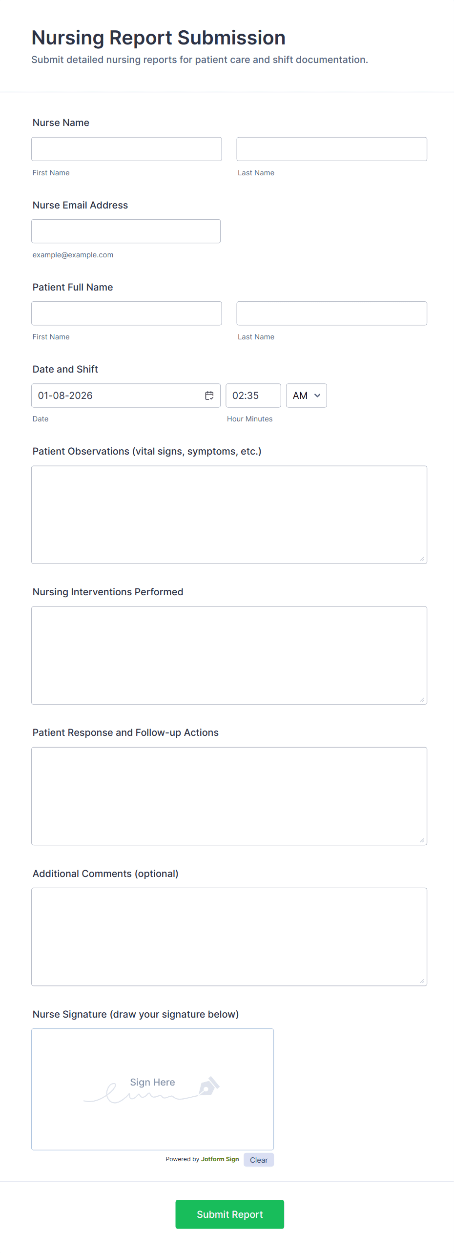 A nurse form is a digital or paper document used by nurses to collect, record, and manage patient information, medical histories, incident reports, and other healthcare-related data.