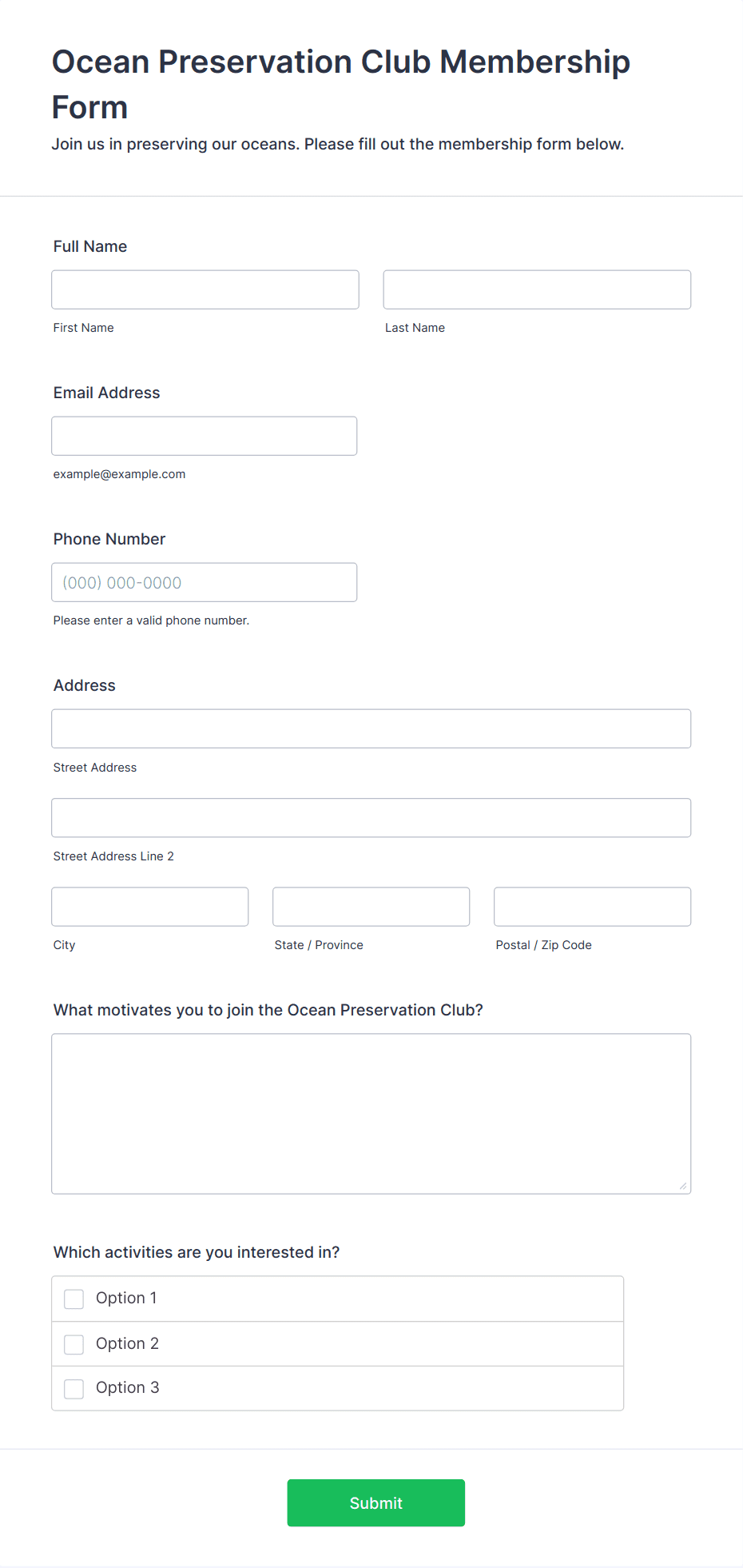 A membership registration form is used by organizations to collect information from potential members. With a free membership registration form, you can collect contact information from your potential members on your website!