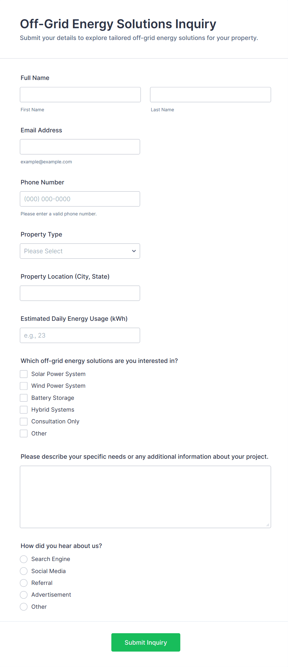 3. What information should be included in an inquiry form?