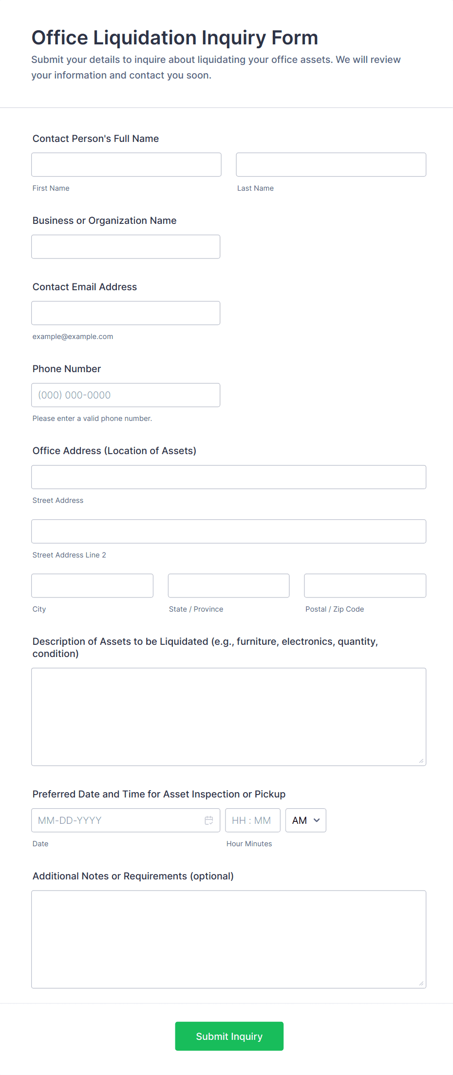 • Vendor or Partnership Inquiries: Allow potential partners or suppliers to request information about collaboration opportunities.